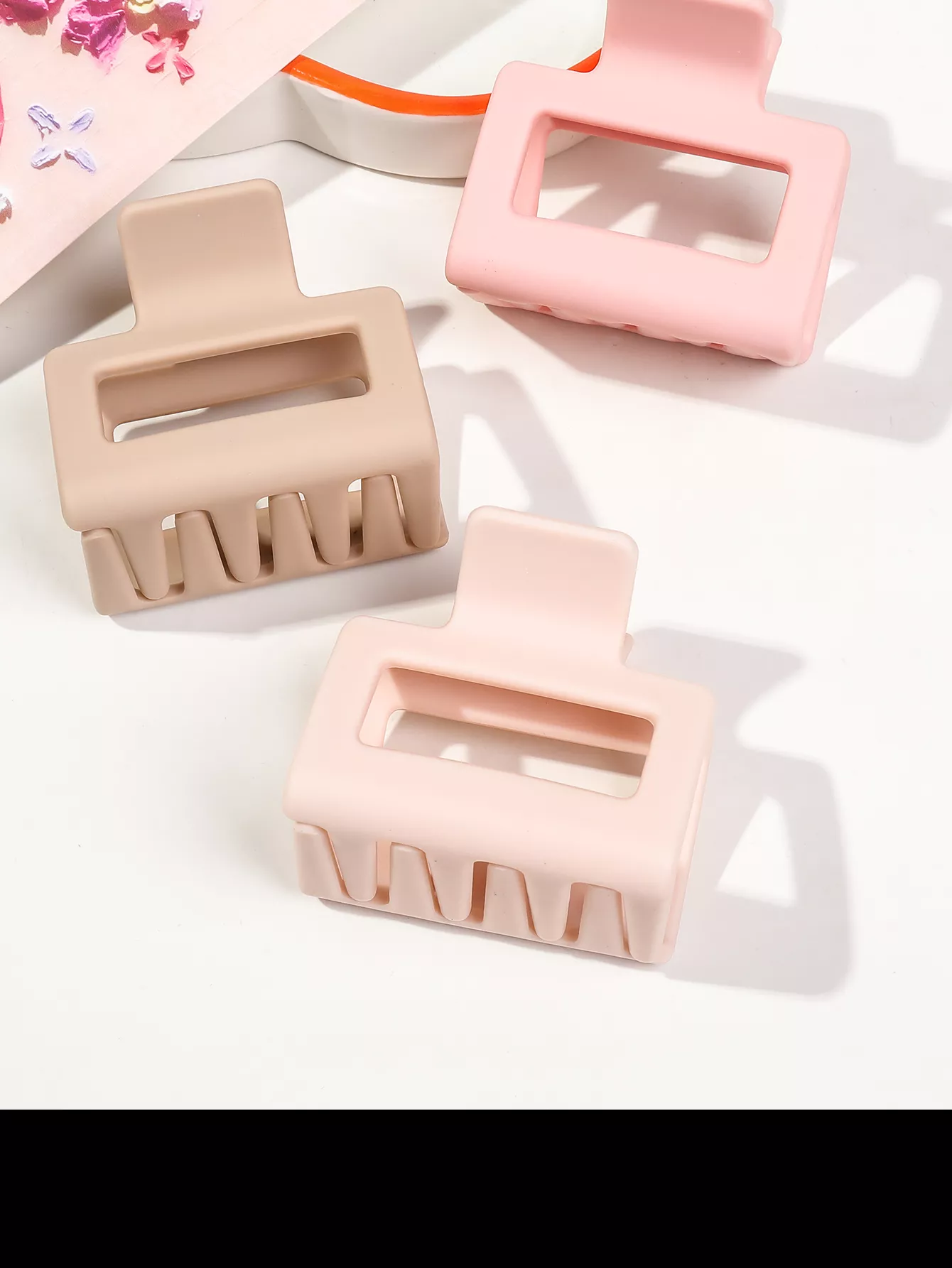 Each clip features a strong metal spring hidden inside a durable plastic shell, finished with smooth edges and interlocking teeth that grip without pulling or damaging your scalp. With their neutral tones and minimalist square shape, these clips are a must-have accessory for any woman who values both function and fashion.