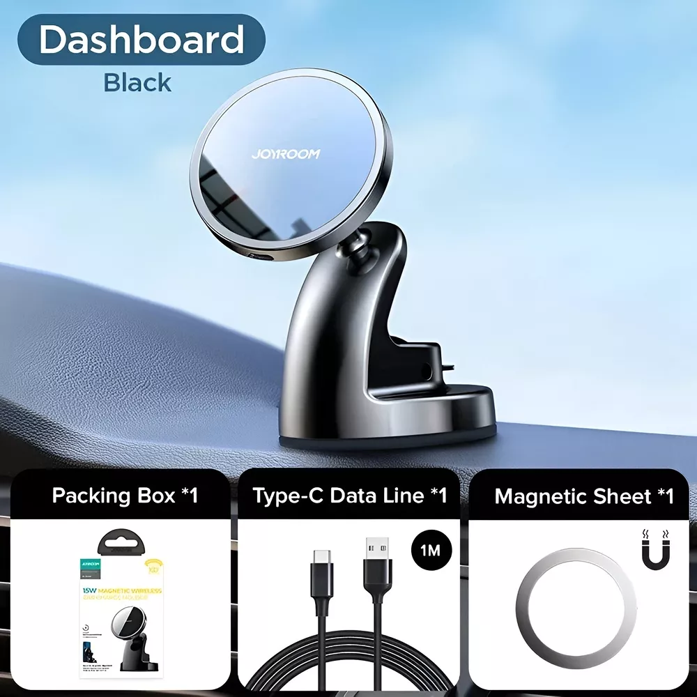 This innovative wireless charger is not just a phone mount—it’s a reliable solution to your charging needs while driving. With its powerful 15W fast charging capability, it ensures that your phone stays powered up during long trips or short commutes. The magnetic feature automatically locks your device into place with zero hassle, offering a secure and stable mount even during high-speed travel. Plus, its sleek and minimalistic design blends seamlessly into any vehicle interior.