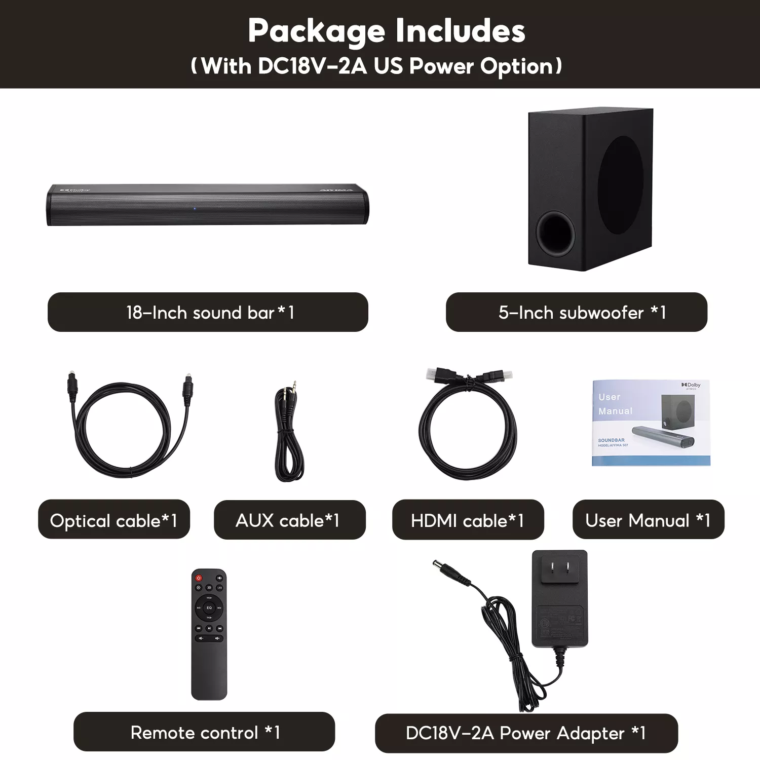 2.1 Sound Bar with Wireless Subwoofer & 3D Surround Sound