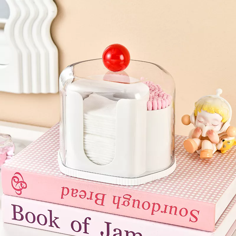 Don’t let clutter take over your space—get this 2-in-1 Qtip and cotton pad dispenser today and experience the benefits of an organized, beautiful vanity!