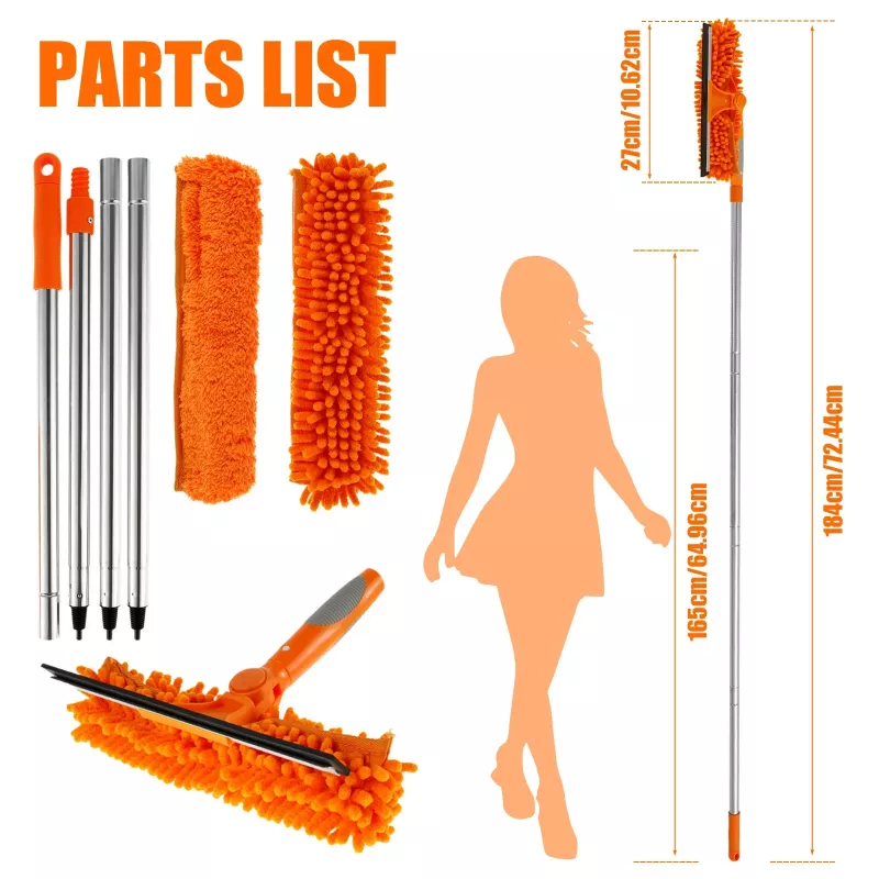 Say goodbye to awkward angles and missed spots! The rotatable cleaning head adjusts to different angles, helping you reach every corner effortlessly. The microfiber and chenille pads effectively trap dust and dirt, while the flexible rubber squeegee removes excess water for a spotless, streak-free finish. Perfect for windows, car windshields, bathroom glass, and more.
