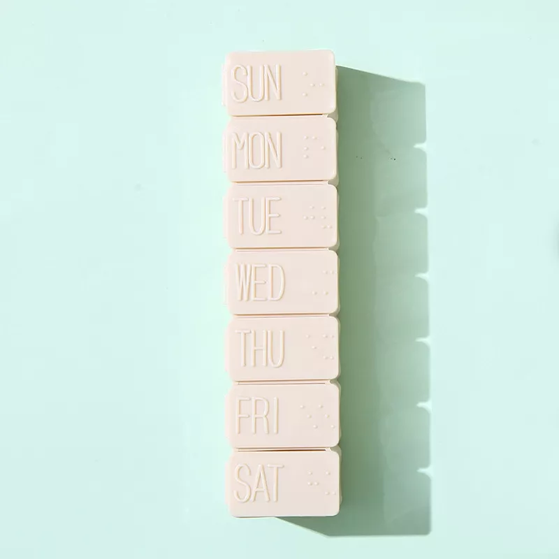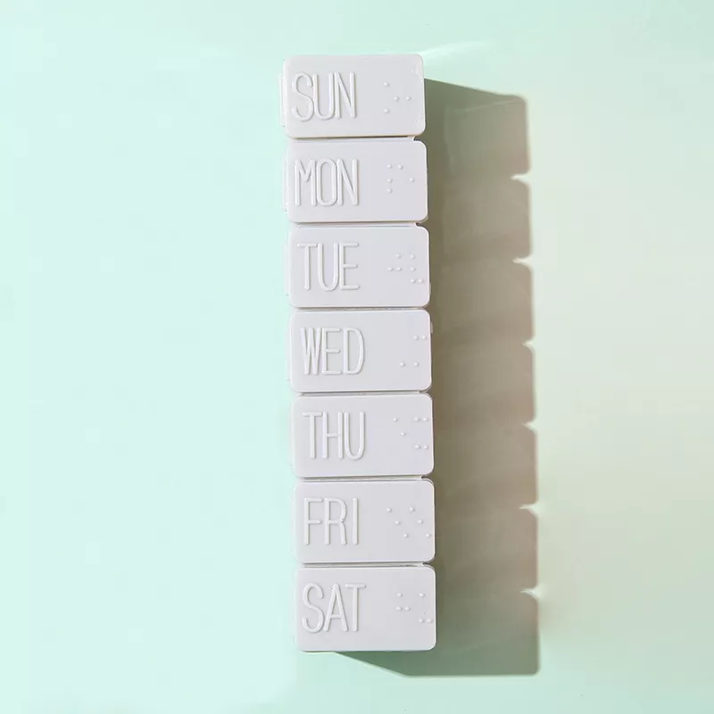 This organizer features seven separate compartments, one for each day of the week, allowing you to easily plan your medication. Each compartment is clearly labeled with bold, visible lettering and raised braille, making it accessible and easy to use for everyone. The boxes are securely shut yet easy to open, keeping your pills safe without the hassle. With two pill boxes in each set, you can plan two full weeks in advance or share one with a loved one.