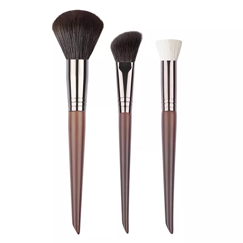 The 3-Piece Face Brush Set is designed to give you complete control over your makeup application. Whether you want to define your cheekbones, apply powder flawlessly, or sculpt your face with precision, these brushes are perfect for the job. The brushes feature a combination of high-quality goat hair, synthetic hair, and wool fiber, ensuring that they pick up just the right amount of product and deliver smooth, even coverage. The ergonomic wooden handles offer a comfortable grip, making each brush easy to maneuver for detailed application.