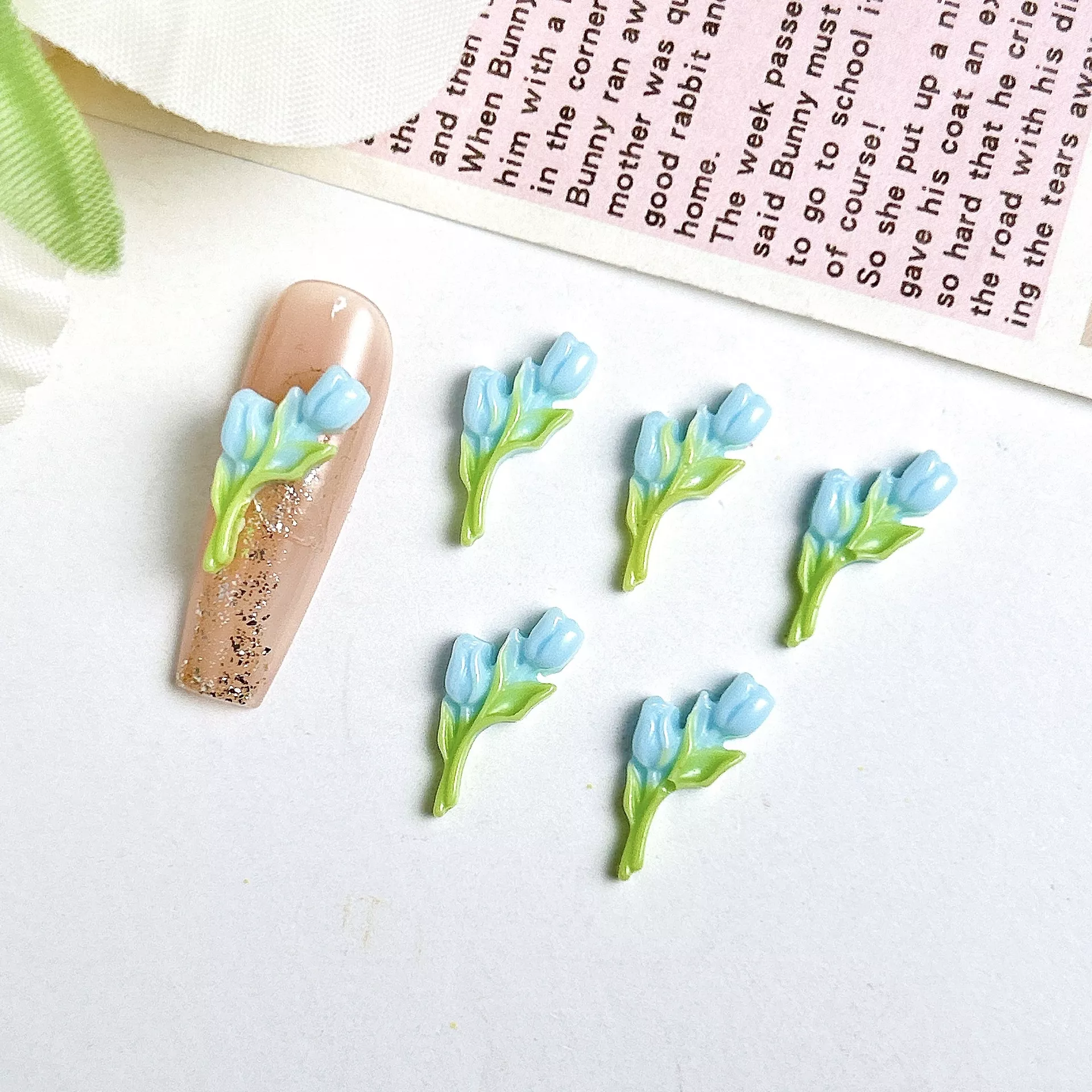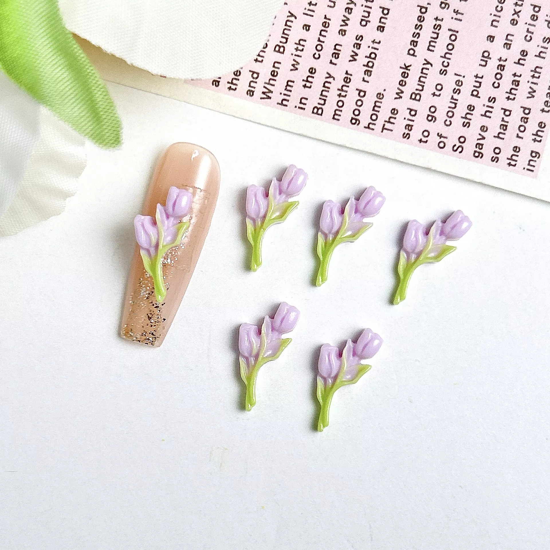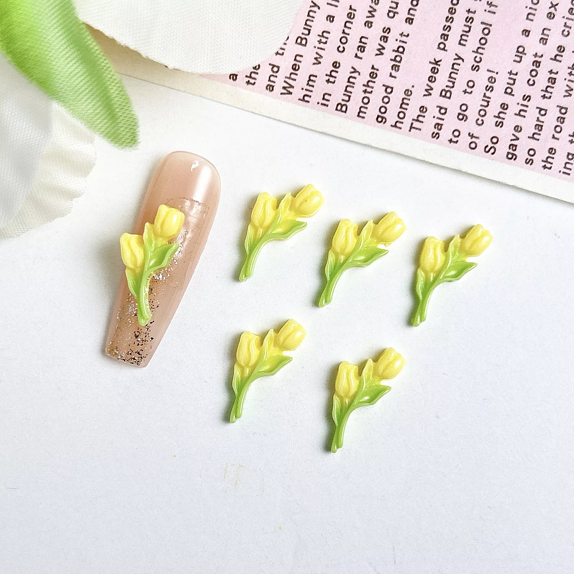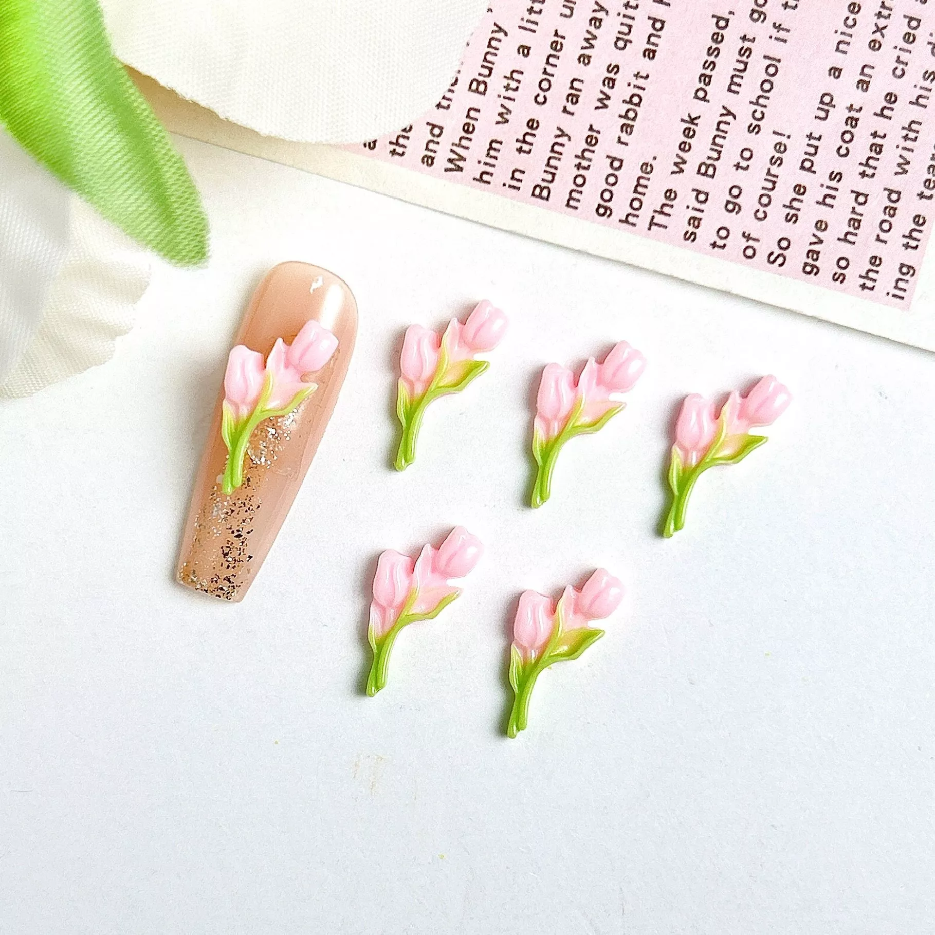 These adorable tulip charms are designed in soft, pastel colors like green, pink, and more, making them easy to pair with various nail polish shades and themes. With their 3D resin structure, they add stunning depth and dimension to any nail look, giving your manicure an extra-special touch. Each charm is lightweight and easy to apply, making them ideal for both home and salon use.