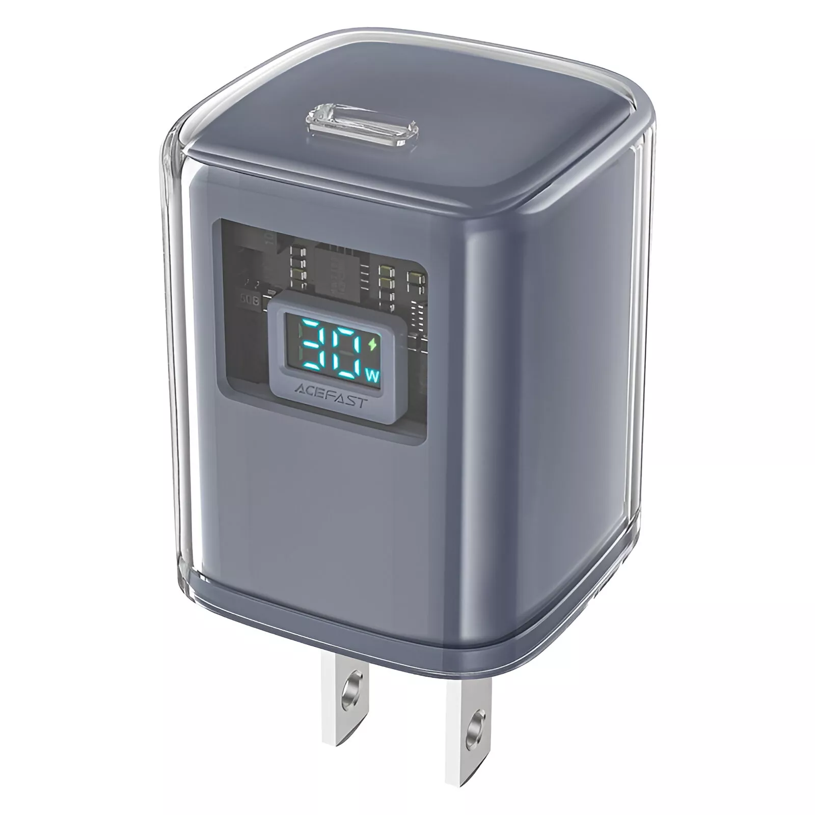 Stand out with a modern transparent design that reveals the internal chip, giving it a sleek and futuristic look. The built-in LED display shows real-time charging power, so you always know your device’s charging status at a glance.