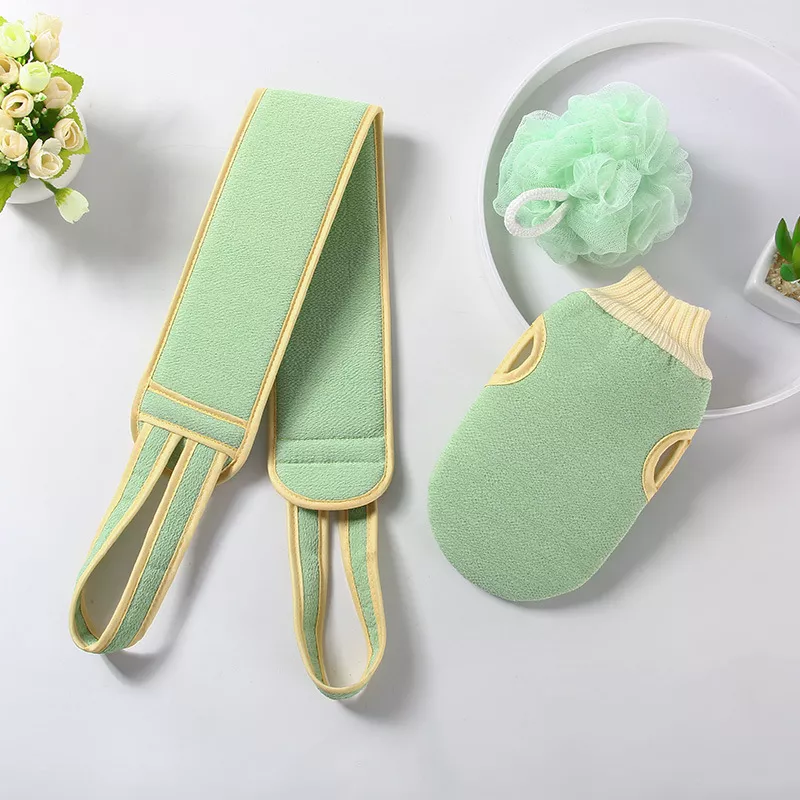 Elevate your self-care regimen with our premium 3Pcs Bath Back Scrubber Set, designed to provide an ultimate, spa-like experience in the comfort of your own bathroom. This versatile set includes a soft bath ball, exfoliating gloves, and a back scrubber, perfect for treating your skin to a refreshing cleanse and a rejuvenating exfoliation. Whether you’re prepping for a long day or unwinding after one, this set has everything you need to pamper yourself.