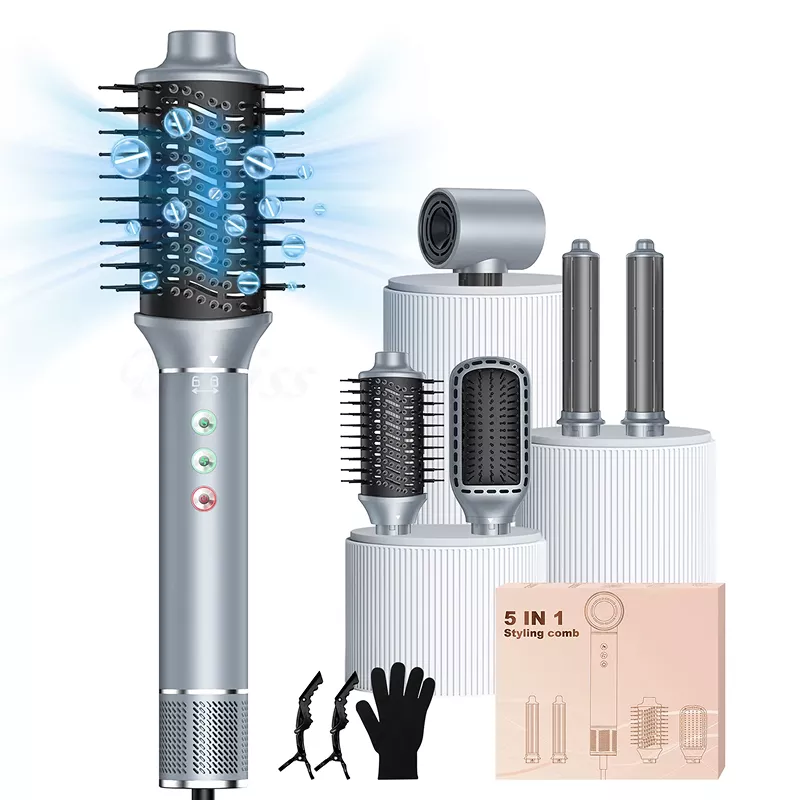 Transform your hair routine with this high-speed 5-in-1 hair styling set. Designed for ultimate versatility, this powerful tool functions as a blow dryer, curling iron, volumizing brush, bang brush, and straightener all in one. Whether you want sleek, straight hair or voluminous curls, this complete styling set delivers professional-quality results in minutes.