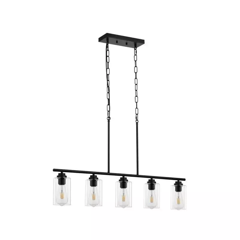 Bring a modern farmhouse charm to your kitchen with this stunning 5-Light Kitchen Island Pendant light fixture. Designed to combine functionality with rustic elegance, this pendant light features a sleek linear design with clear glass lampshades, offering a perfect blend of contemporary style and vintage appeal. Ideal for kitchens, dining rooms, or any space that needs a touch of sophistication, this chandelier will elevate the ambiance with its timeless look and efficient lighting. Whether you’re preparing meals or hosting a gathering, this fixture adds both beauty and practicality to your home.