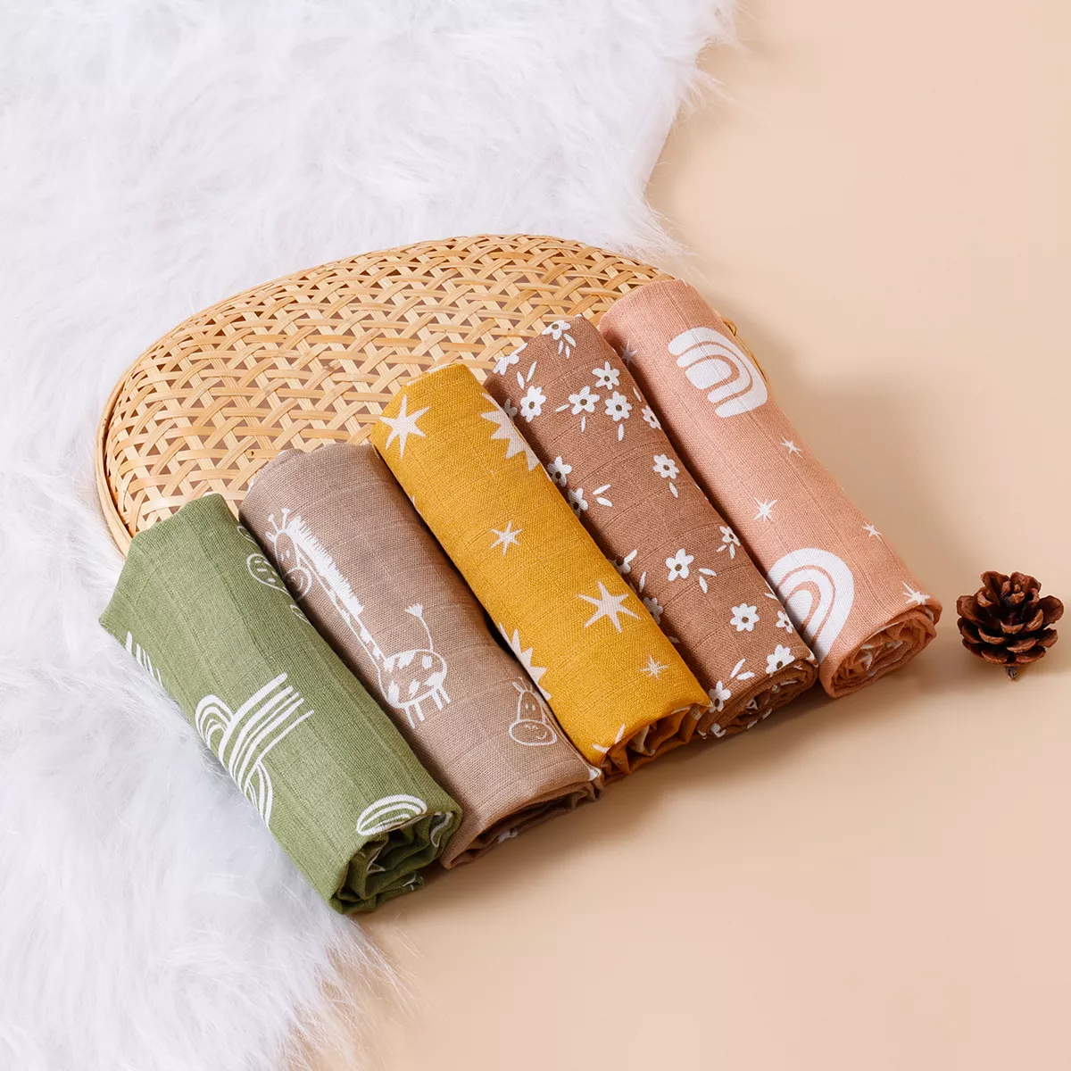 Wrap your little one in pure comfort with this 5-pack of Bamboo Cotton Muslin Swaddle and Burp Cloths. Made from a soft and breathable blend of 70% bamboo and 30% cotton, these cloths are perfect for a variety of baby care needs. Whether you’re swaddling your newborn, wiping up spills, or burping your baby, these cloths offer a gentle touch that’s ideal for delicate skin. With a stylish, patchwork digital print design, these cloths are as cute as they are functional.