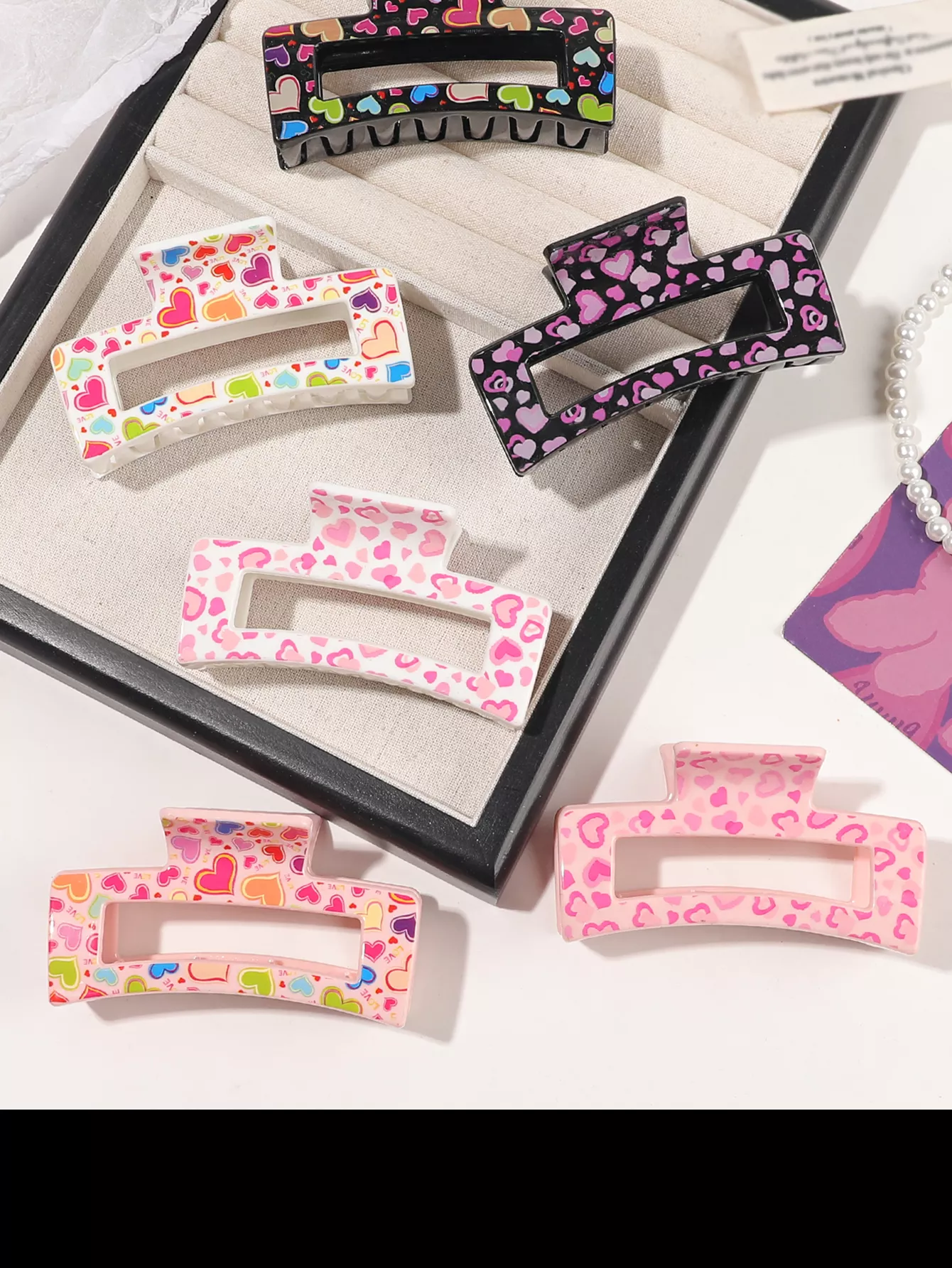 Bring a touch of love and style to your hair routine with our 6-piece Heart Print Hair Claw Clips. Designed with romantic heart patterns in vibrant, eye-catching prints, these large hair clips are more than just pretty accessories—they’re the everyday styling tool you didn’t know you needed. Whether you’re getting ready for Valentine’s Day or simply want to add a flirty twist to your daily look, these clips deliver the perfect blend of fashion and function.