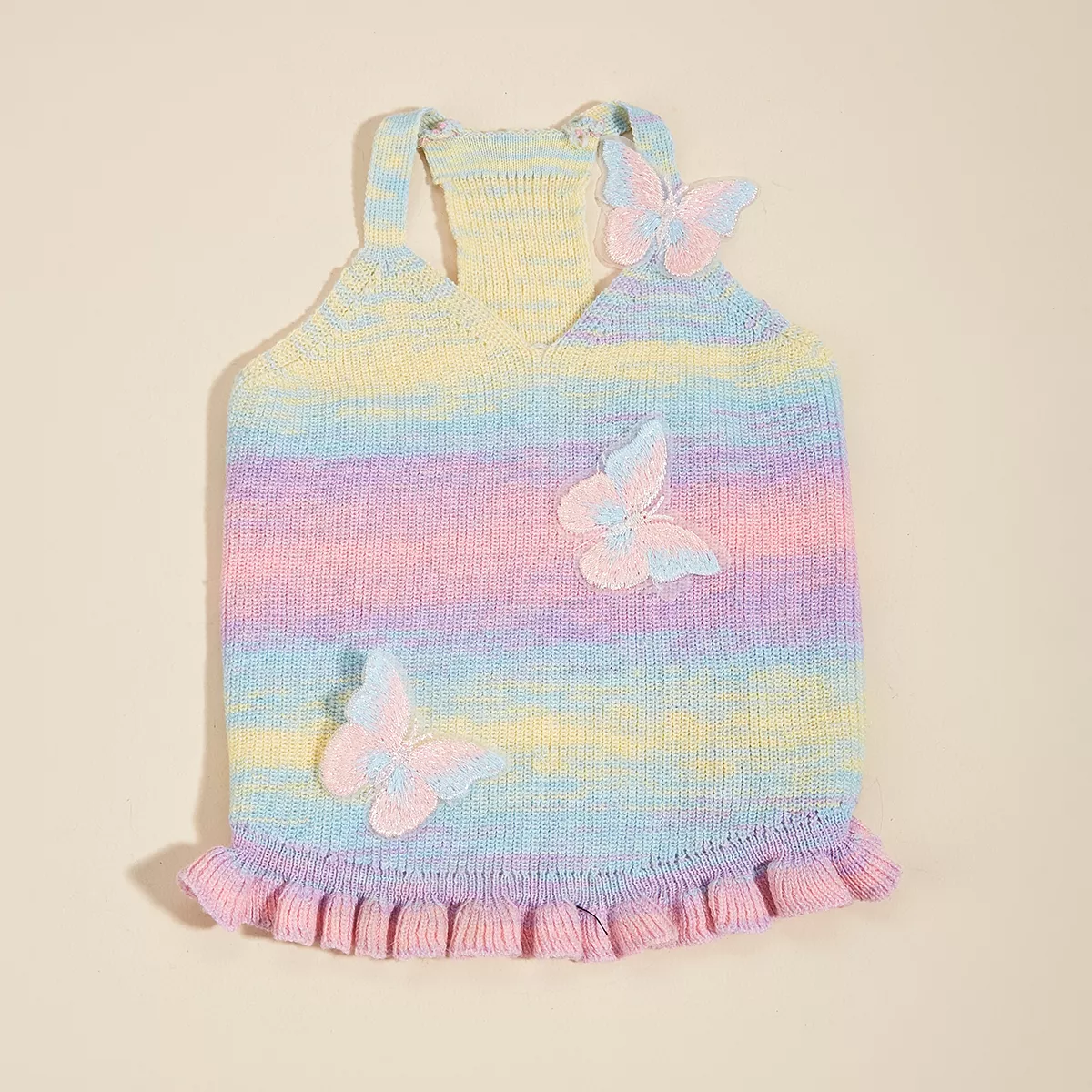 Give your furry friend a fresh and stylish look with this Knitted Rainbow Dog Dress featuring a delicate butterfly accent! Designed for small dogs and even cats, this charming pet outfit is perfect for daily wear, special occasions, or simply adding a pop of color to your pup’s wardrobe. Made from soft, breathable spandex, it ensures all-day comfort while keeping your pet looking absolutely adorable.