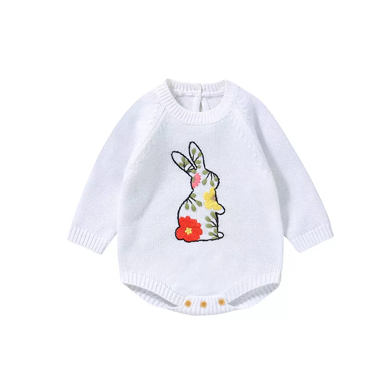 What sets this bodysuit apart is its charming, playful design. The cute rabbit embroidery adds an extra layer of personality, making it a unique and special outfit for your baby. The acrylic fabric is gentle and breathable, perfect for the delicate skin of your newborn. Whether for playtime, nap time, or an outing, this bodysuit will keep your baby comfortable and stylish. The easy-to-use pullover style makes dressing and undressing simple and quick, while the high-quality material ensures durability and comfort. This versatile piece can be paired with any accessories or outerwear to create a cute and functional fall look for your baby.
