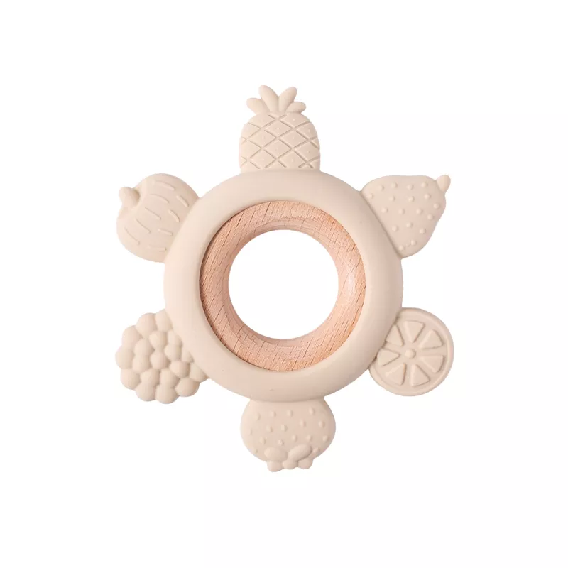 Introducing the perfect solution for your baby’s teething discomfort – the Baby Silicone Teether Toy with a natural wooden ring. This adorable teething accessory is designed with both style and safety in mind. Made from high-quality, food-grade silicone, it provides your little one with a soothing, safe, and enjoyable chewing experience. The fruit-shaped design not only attracts your baby’s attention but also promotes healthy development during teething stages. Whether they’re 3 months or 2 years old, this teether is ideal for babies of all ages!