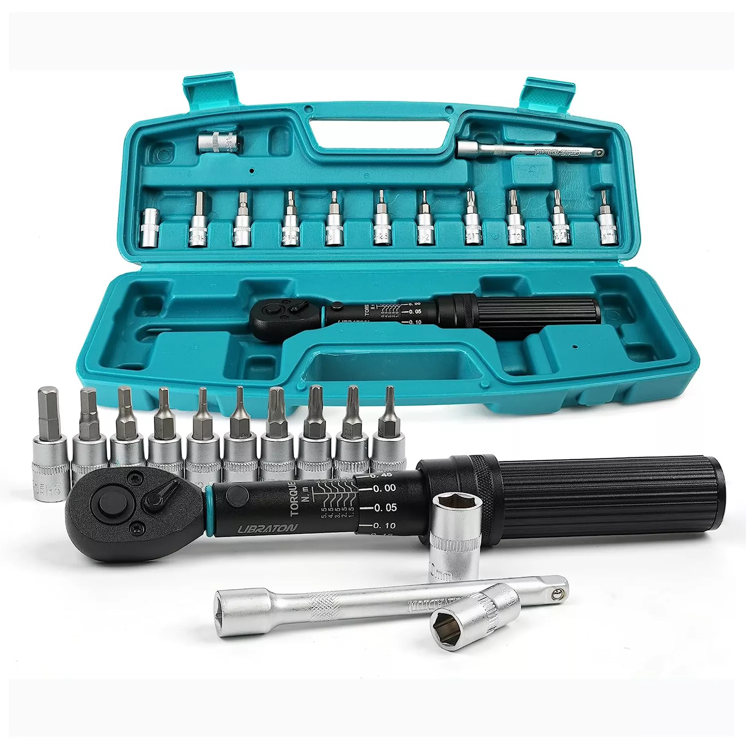 This set includes everything you need for professional-grade bike maintenance. It features a 1/4” drive click torque wrench with a working range of 1-6Nm, ensuring accurate tightening. The set also comes with: