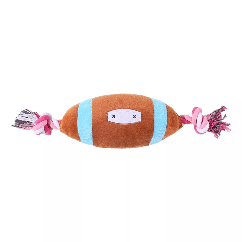 This toy is especially great for interactive play with your dog. Its rugby shape encourages fetching, tug-of-war, and tossing games that help strengthen the bond between you and your furry companion. Plus, the combination of soft fleece and cotton rope makes it a toy that can also double as a comforting cuddle buddy during rest time.