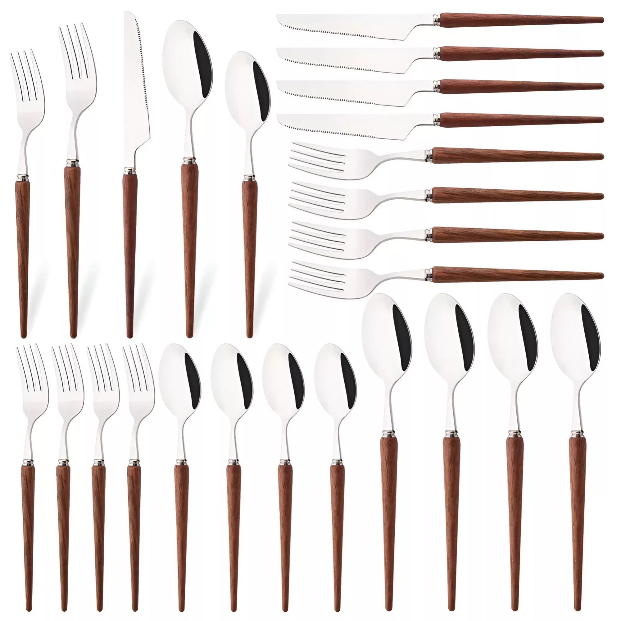 The sleek stainless steel construction offers superior durability and resistance to corrosion, while the imitation wooden handles add a modern yet timeless aesthetic to your dinnerware collection.