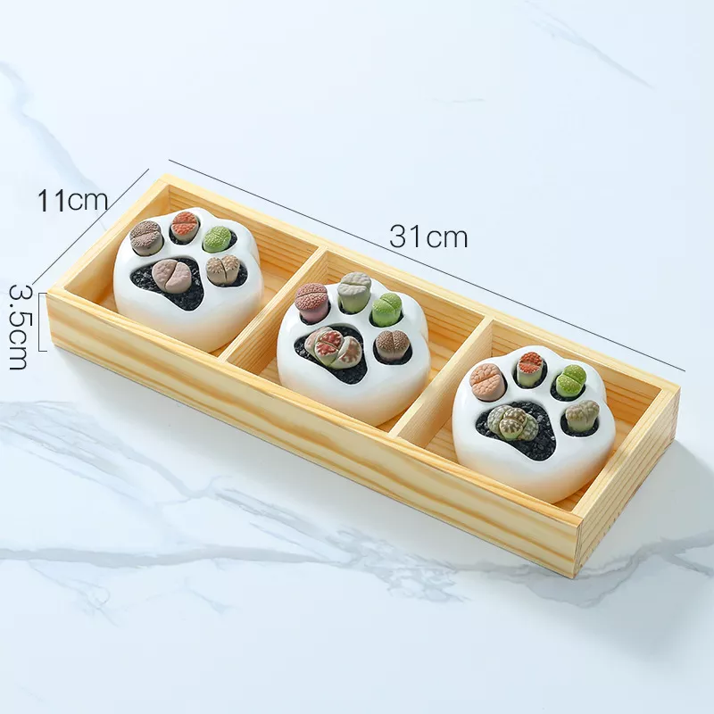 Transform your workspace or living area into a cozy, charming haven with this Ceramic Cat Paw Succulent Planter Set. This unique and playful set includes three meticulously crafted ceramic pots with a cute cat paw design, paired with a sleek bamboo stand to neatly display your mini plants. Perfect for plant lovers, this set is ideal for showcasing your favorite succulents, small flowers, or herbs while adding a touch of personality to your home or office décor.