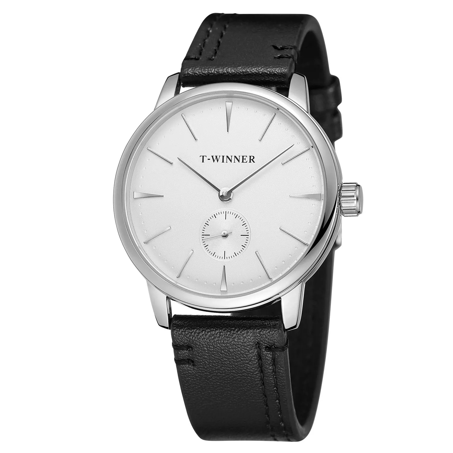 This watch stands out due to its mechanical movement, offering a unique experience for those who prefer the art of winding their watch manually. Unlike quartz watches that rely on batteries, this timepiece requires you to wind it up, creating a more personal and satisfying connection with your watch. The combination of the sleek black and white dial, durable stainless steel case, and premium leather strap makes this a versatile and sophisticated accessory for any occasion.