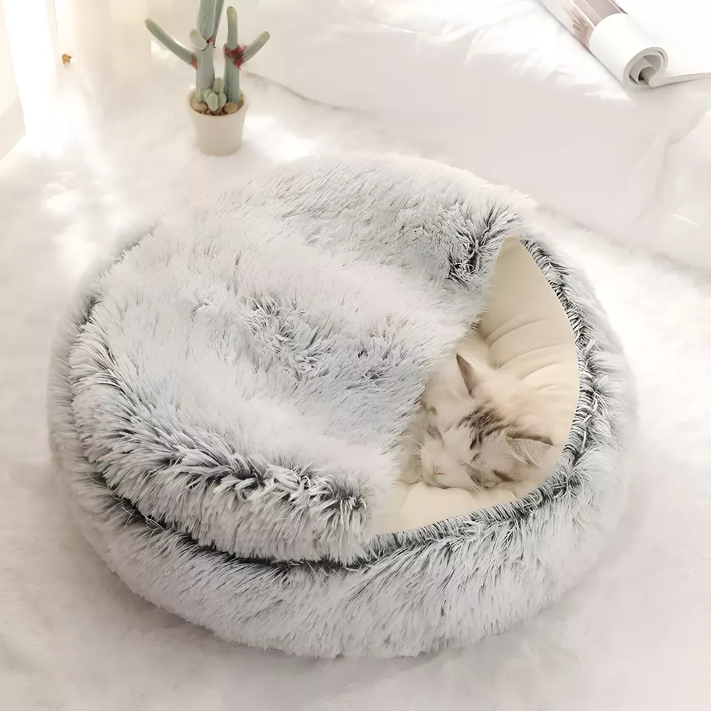 Cozy Semi Enclosed Shell Cat & Dog Nest – Plush Winter Warm Pet Bed