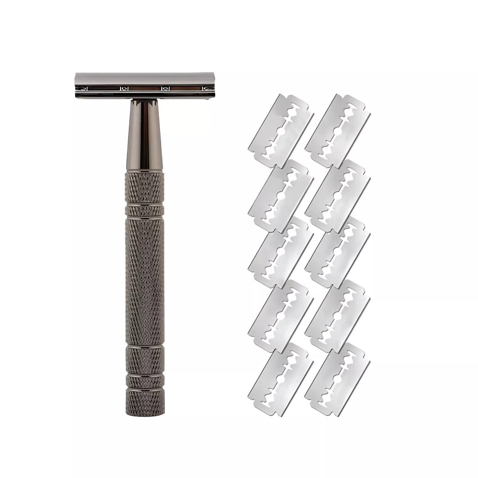 Forget the waste and cost of disposable razors. This safety razor is built to last, offering an eco-friendly and budget-conscious alternative to cartridge systems. The ergonomic, non-slip handle ensures steady control, while the balanced weight allows the razor to do the work—no need to press down. With its closed comb design, it’s beginner-friendly and safe for sensitive areas. Each razor comes with 10 high-quality stainless steel blades, individually wrapped for clean, safe use.