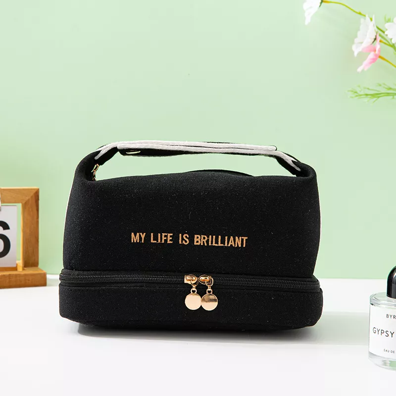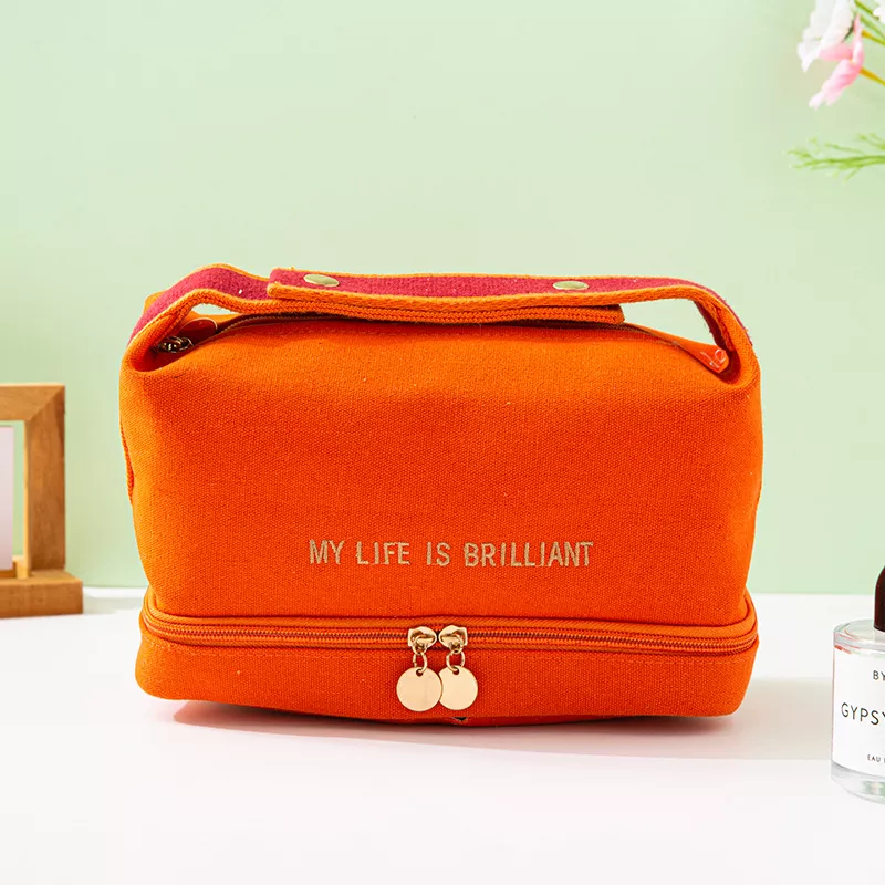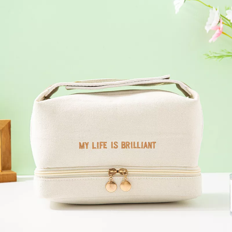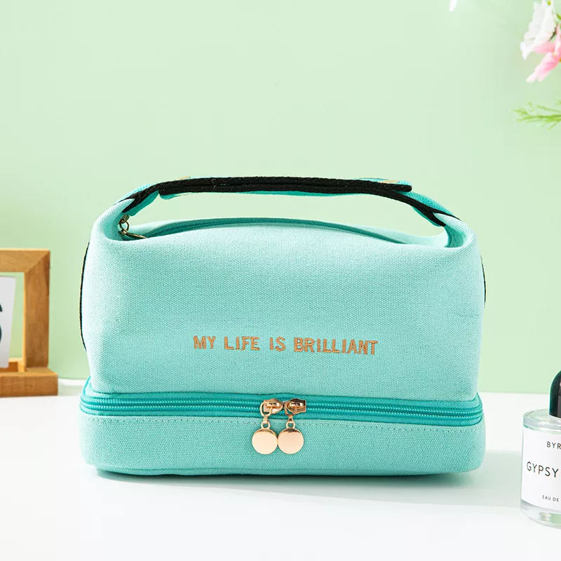 Say goodbye to cluttered cosmetic bags and hello to effortless organization with this Double Layer Waterproof Canvas Makeup Bag. Designed with travel in mind, this chic yet functional tote is perfect for keeping your beauty essentials neat, protected, and always within reach. Whether you’re heading to the gym, packing for a weekend getaway, or just tidying up your bathroom counter, this bag makes storing makeup and toiletries simple, stylish, and stress-free.
