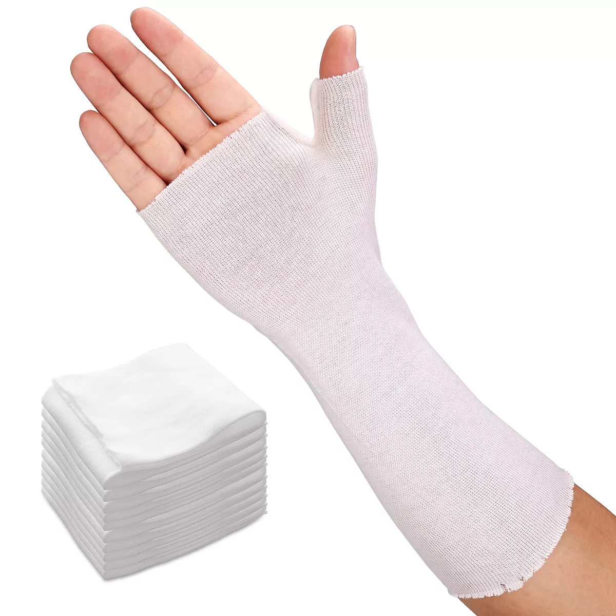 Made from a soft blend of polyester and cotton, these hand sleeves offer a snug, breathable fit without adding bulk. The built-in thumb sleeve adds extra support and protection where you need it most, while the smooth, seamless design reduces friction and pinching. Perfect to wear under splints, braces, or casts for all-day skin comfort.