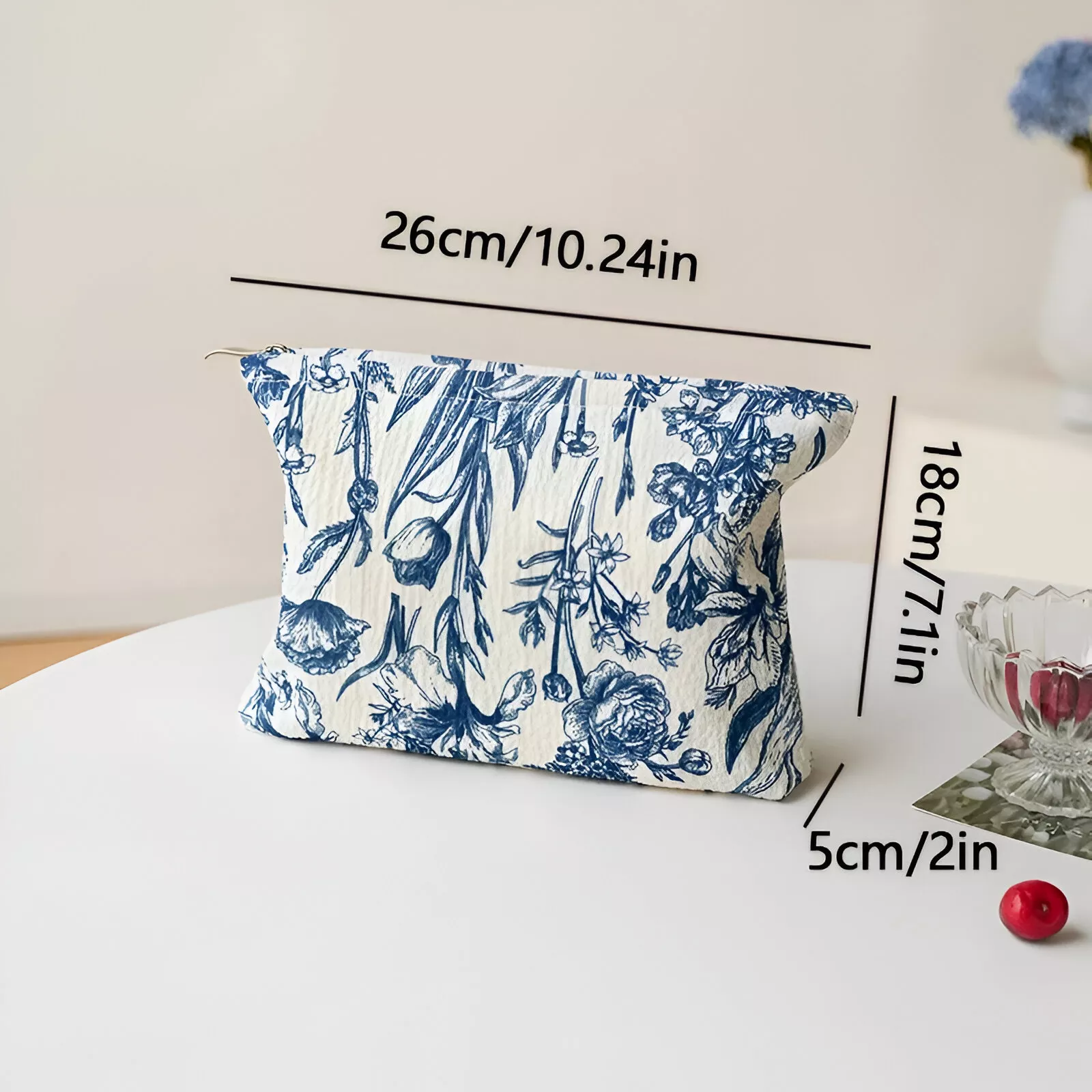 Inspired by timeless blue and white porcelain art, this large-capacity makeup bag brings elegance and function together in one must-have beauty essential. Designed with a soft pillow shape and a beautiful bohemian flair, it’s more than just a cosmetic case – it’s your new favorite travel companion. Whether you’re getting ready at home, heading to the gym, or packing for a weekend getaway, this zippered toiletry bag has all the room and style you need.