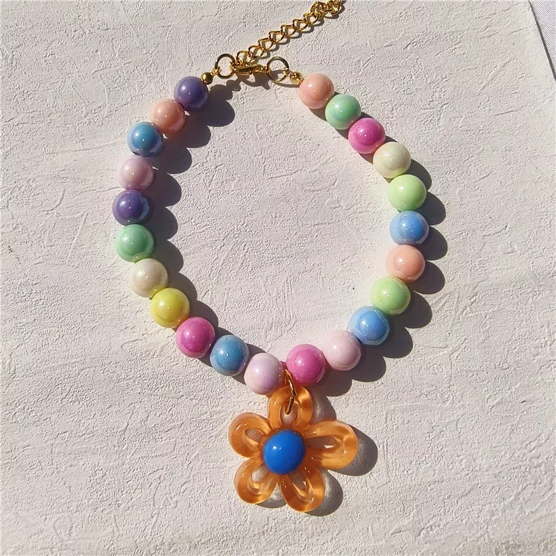 Enhance your pet’s style with our Handmade Pet Collar featuring a charming flower pendant and sparkling colored pearls. This beautifully designed collar is perfect for both dogs and cats, bringing a touch of luxury and sparkle to your furry friend’s look. Crafted from high-quality imitation pearls and alloy materials, this collar is as durable as it is stylish. Whether it’s for everyday wear or special occasions, your pet will shine in this stunning accessory.