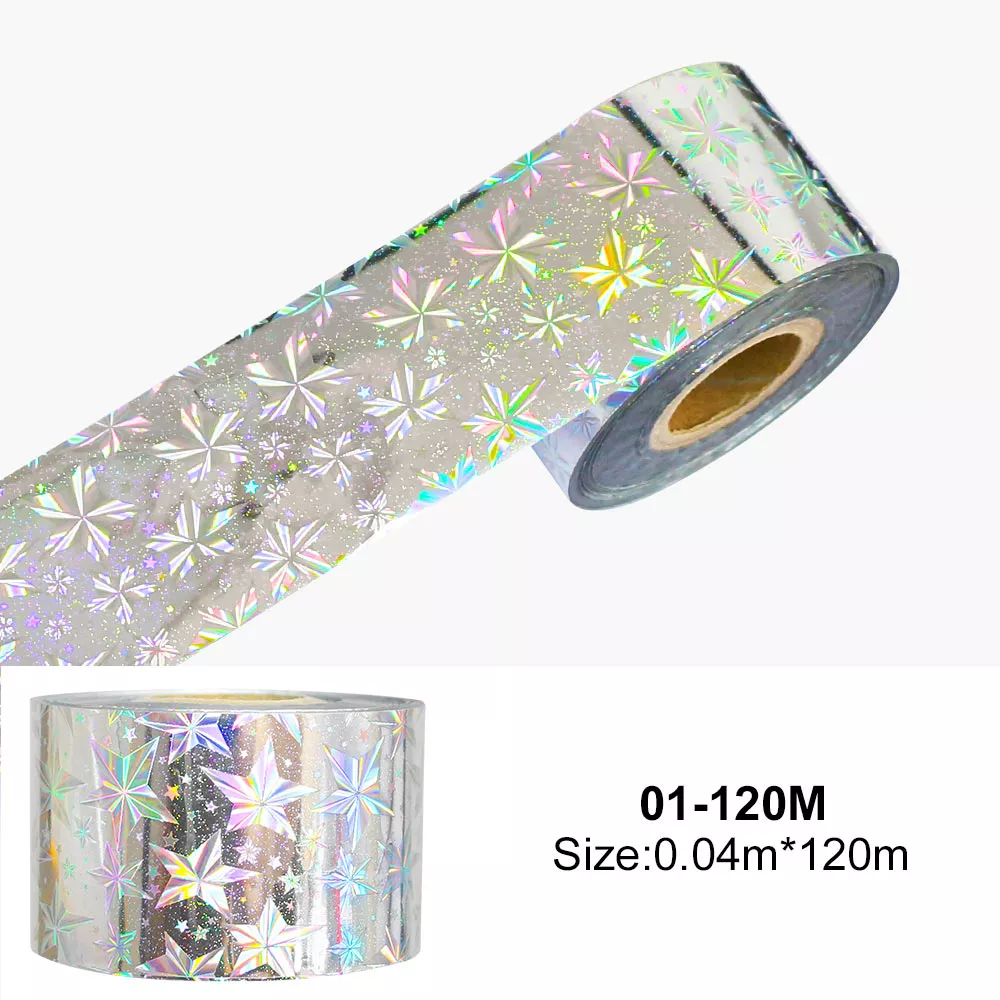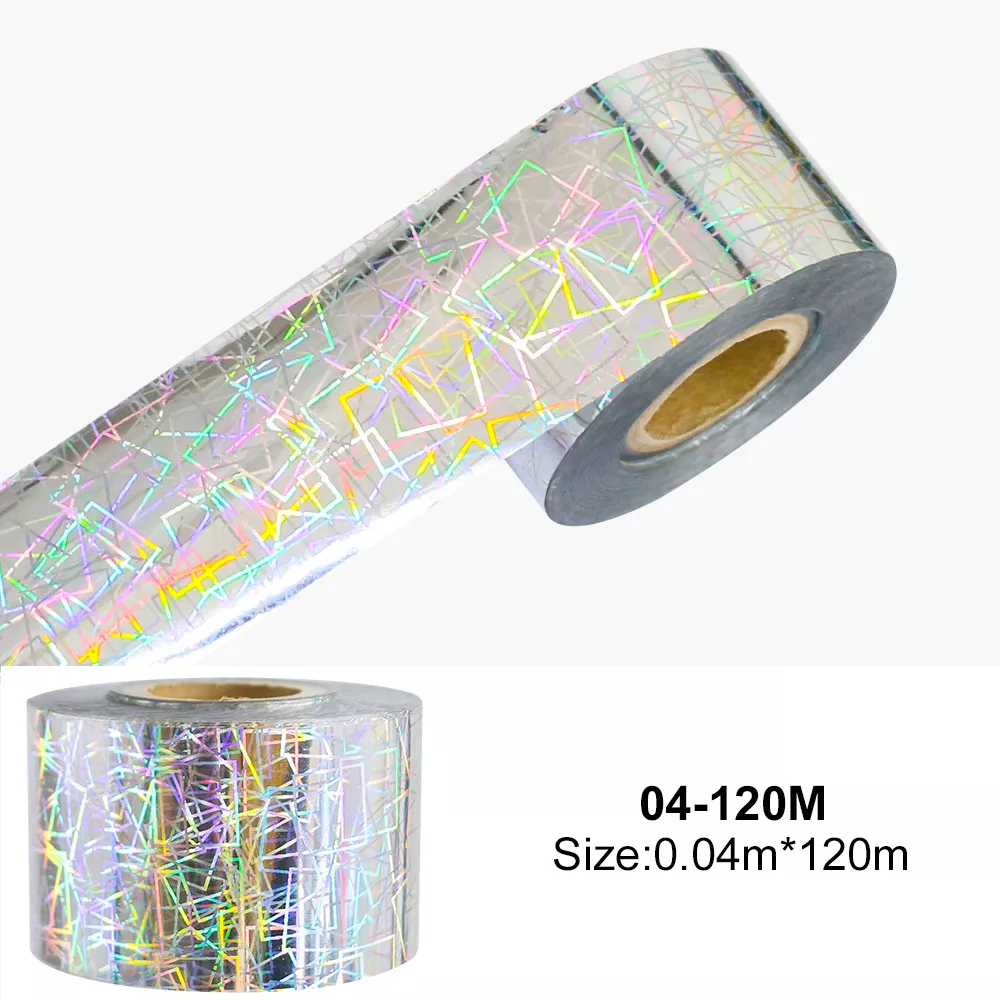 Turn heads with every flick of your hand using our 120M Holographic Nail Foil Roll – the ultimate must-have for any nail art lover or professional nail tech. This laser-effect foil roll delivers stunning, abstract holographic designs that effortlessly elevate your nail game. With 120 meters of high-quality foil in each roll, you have everything you need to create endless unique looks right at your fingertips.