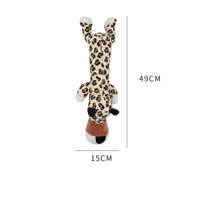 Give your furry friend a toy they will love with this interactive chew toy designed for playful pups. Shaped like adorable animals such as giraffes and leopards, this soft plush toy makes playtime exciting with built-in sound paper that creates a fun crinkling noise. Whether your dog loves to chew, cuddle, or play tug-of-war, this toy is the perfect way to keep them entertained while supporting their dental health.