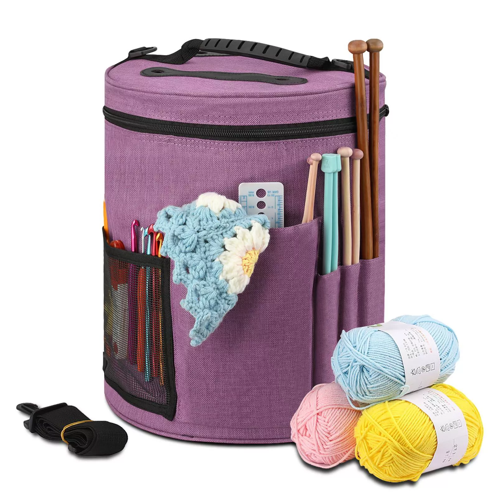 Whether you’re a seasoned crochet enthusiast or a beginner knitter, this Large Capacity Crochet Bag is the ultimate solution for keeping your yarn, knitting needles, crochet hooks, and accessories neat and accessible. Designed with crafters in mind, this tote bag combines functionality with a chic, easy-to-carry design that makes organizing and transporting your supplies a breeze.