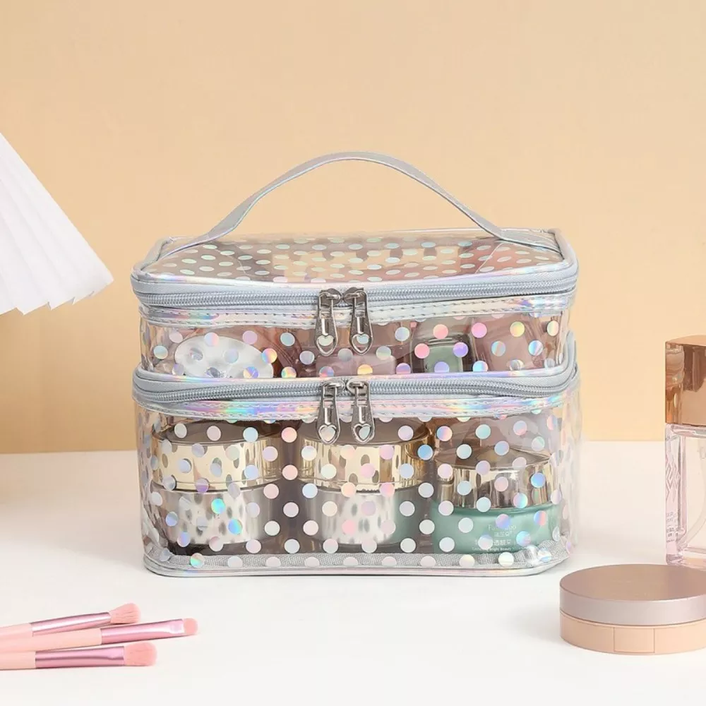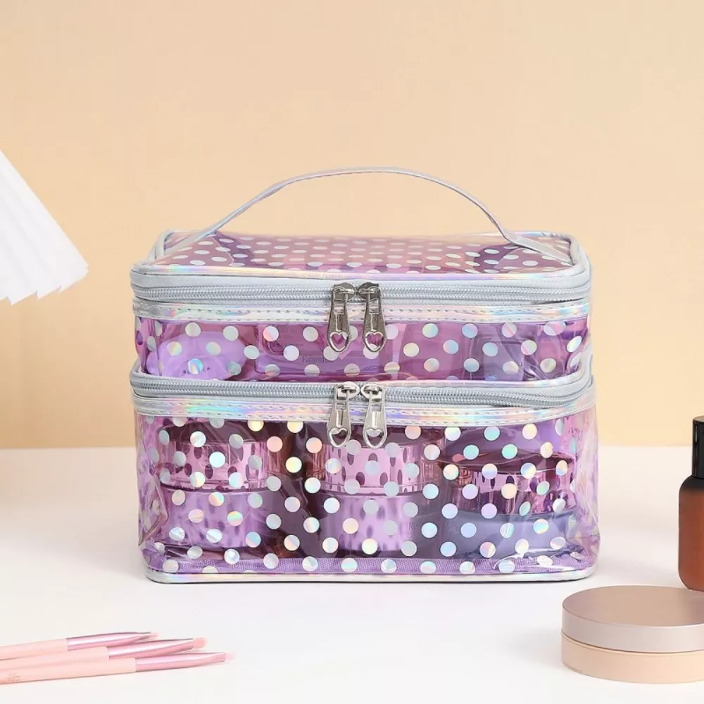 Say goodbye to messy makeup bags and hello to effortless organization with this chic and practical Portable Polka Dot Makeup Bag. Designed for makeup lovers on the move, this stylish cosmetic case combines function, fashion, and convenience all in one. Whether you’re jet-setting across the globe or getting ready at home, this spacious, double-layer makeup bag makes staying polished easier than ever.