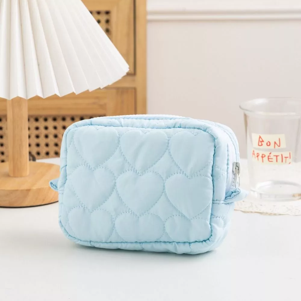 Unlike ordinary makeup bags, this pouch stands out with its lovely heart pattern and sleek silhouette. The quality stitching and smooth zipper give it a refined finish, while the roomy interior helps you stay organized and stress-free. It’s a little bag that brings a big dose of charm to your routine.