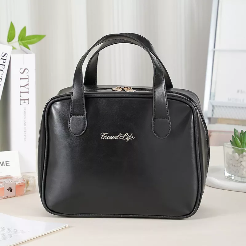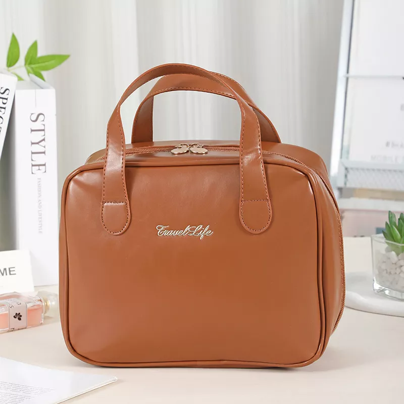 Made from high-quality waterproof PU material, this bag is built to withstand spills and moisture, keeping your makeup and toiletries safe and dry. The wide-open top design makes it incredibly easy to see and access everything inside—no more digging through a dark, cluttered pouch. Measuring approximately 9.8 x 3.5 x 7.5 inches, it offers generous space for creams, brushes, lipsticks, perfumes, and more.