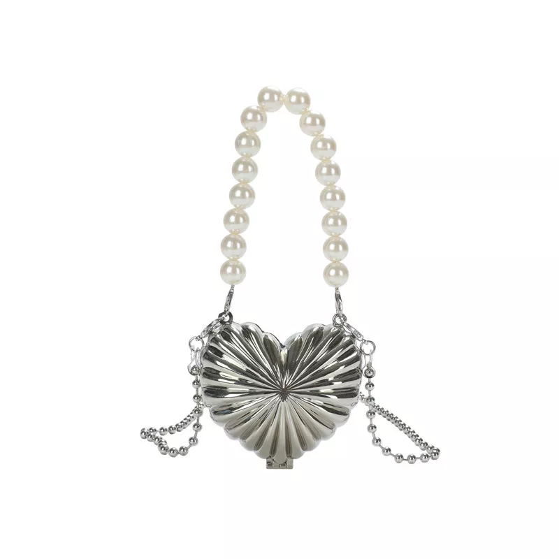 Introducing our latest obsession – the Luxury Pearl Beaded Metallic Heart Crossbody Bag. A symbol of sophistication and high fashion, this bag is designed for the modern woman who appreciates elegance in compact sizes. Crafted with an exquisite metallic finish and adorned with pearls and chains, this mini heart-shaped handbag is more than an accessory; it’s a statement.