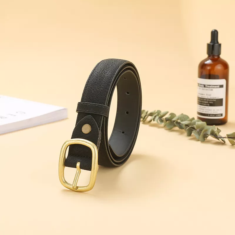 Looking for a belt that can do it all? This leather belt is your answer. The genuine pigskin leather provides a soft yet durable texture, making it ideal for daily use. Whether you’re heading to work or going out for a casual weekend, this belt adds that finishing touch of elegance to any outfit. The solid design means it won’t compete with your clothing, but rather, it will enhance your overall appearance. Plus, with its sturdy alloy buckle, you can trust that it will stay securely fastened all day long.