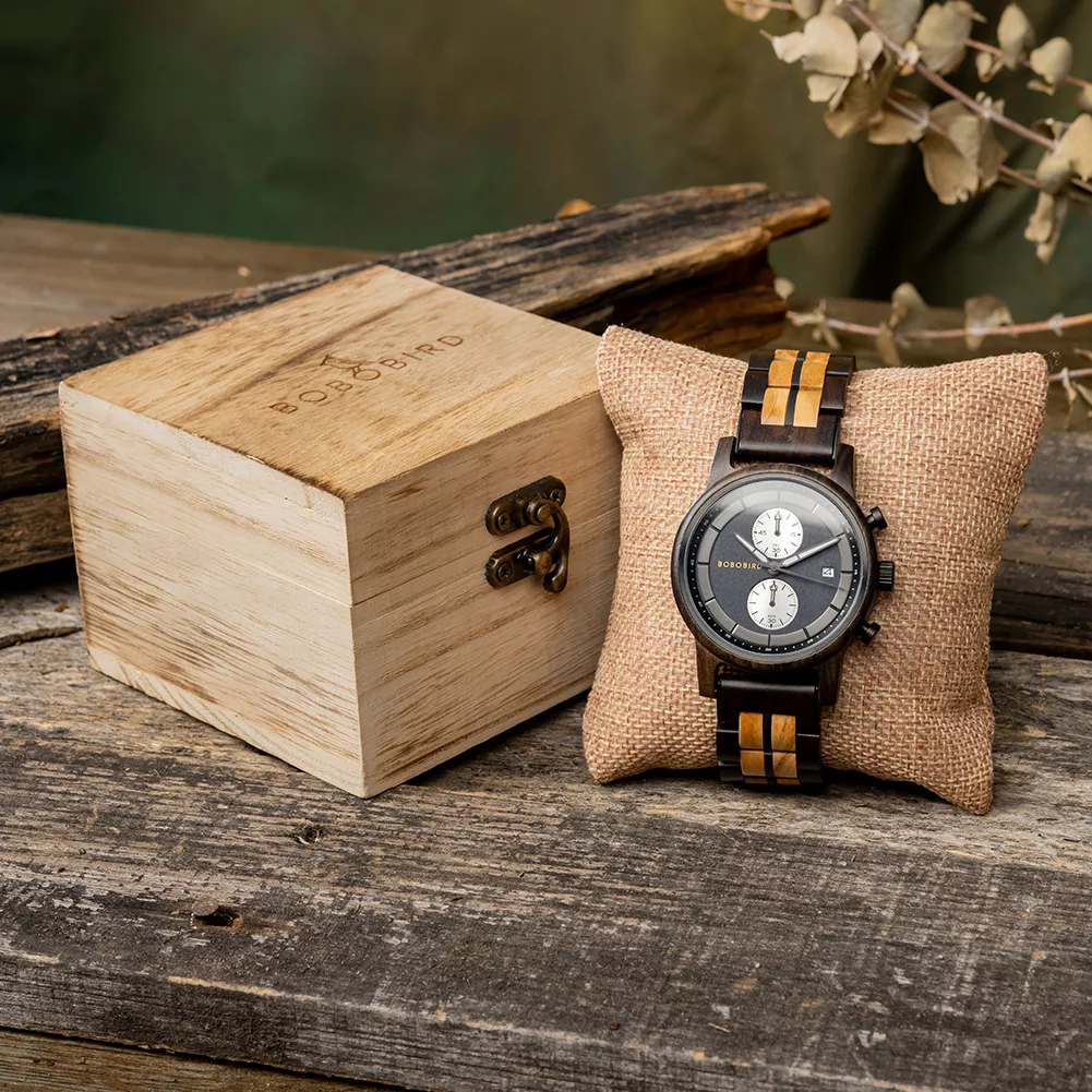 This luxury wooden watch is not just a timekeeper but a statement piece. Made from high-quality natural wood, it stands out with its earthy, sophisticated vibe. The Japanese quartz movement ensures pinpoint accuracy, while the chronograph function lets you manage your time like a pro. The back light feature means you won’t be left in the dark when it’s time to check the hour.