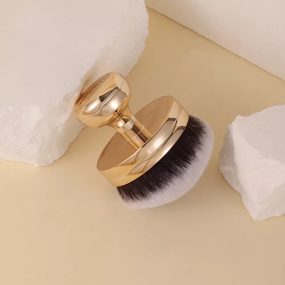 What makes this makeup brush truly special is its unique dual-use bristles, making it a true all-in-one tool. The long, soft bristles are ideal for dry products like powder and highlighter, giving your skin a beautiful, blended finish. The short, synthetic bristles are perfect for wet products, ensuring an even, smooth application without any smudges. Plus, the sleek electroplated handle not only looks luxurious but ensures durability for long-lasting performance.