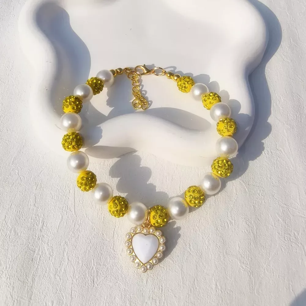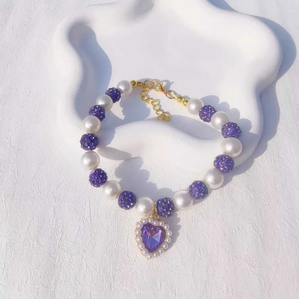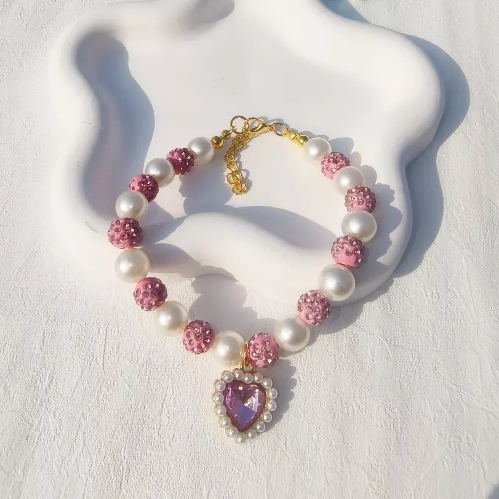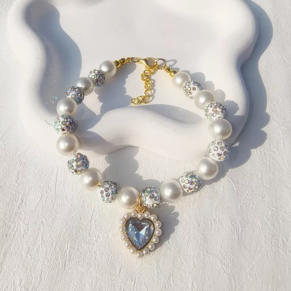 Give your furry friend a touch of elegance with the Noble Pearl Gemstone Pet Collar. Handmade with love, this collar features a stunning peach heart pendant that adds a sparkle of charm to your pet’s look. Available in multiple colors to suit your pet’s personality, this jeweled collar is not just a practical accessory, but a statement piece that elevates their style. Whether you’re strolling through the park or attending a special event, this collar ensures your pet is the center of attention. Perfect for both dogs and cats of all sizes, this collar is made from high-quality materials to ensure comfort and durability while providing a personalized touch to their everyday wear.