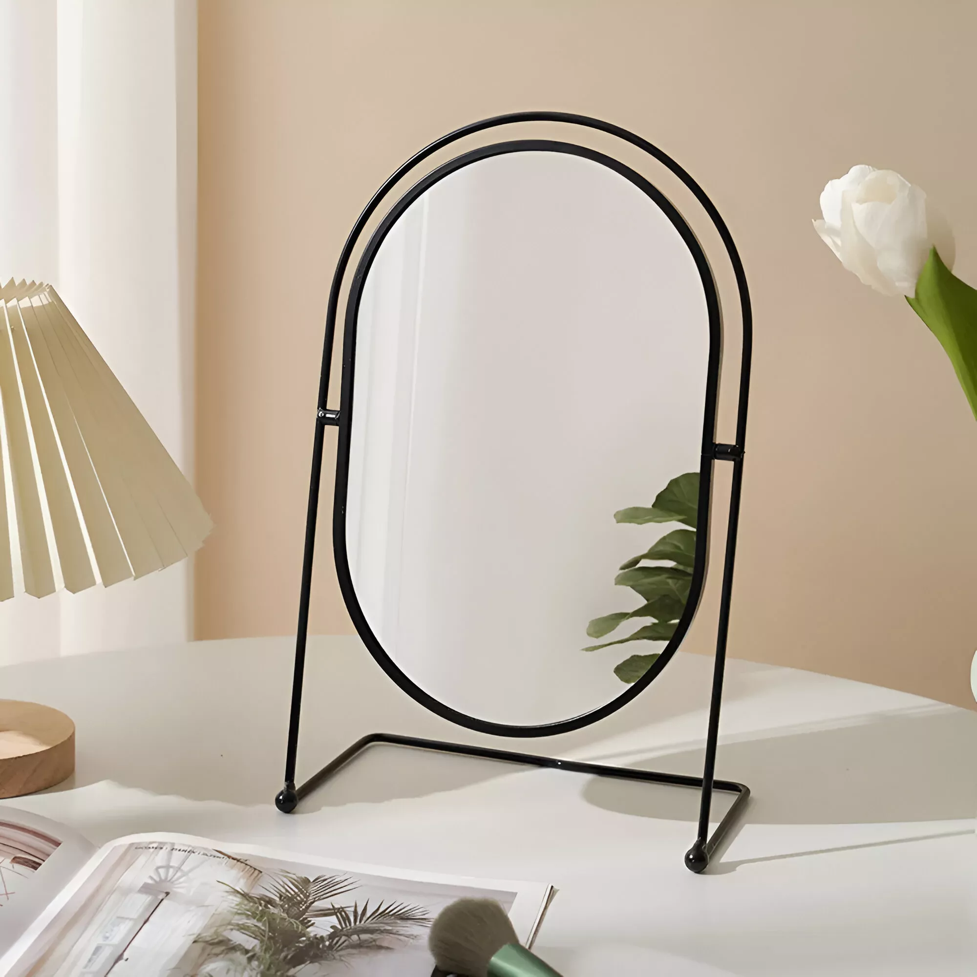 Elevate your beauty routine with the Nordic Iron Frame Oval Makeup Mirror, a stylish and functional addition to any vanity, dresser, or bathroom countertop. Designed with a sleek iron frame and a high-definition glass mirror, this decorative piece offers a clear, distortion-free reflection for flawless makeup application and skincare routines. Whether you’re getting ready for the day or adding a chic touch to your décor, this mirror is a must-have.