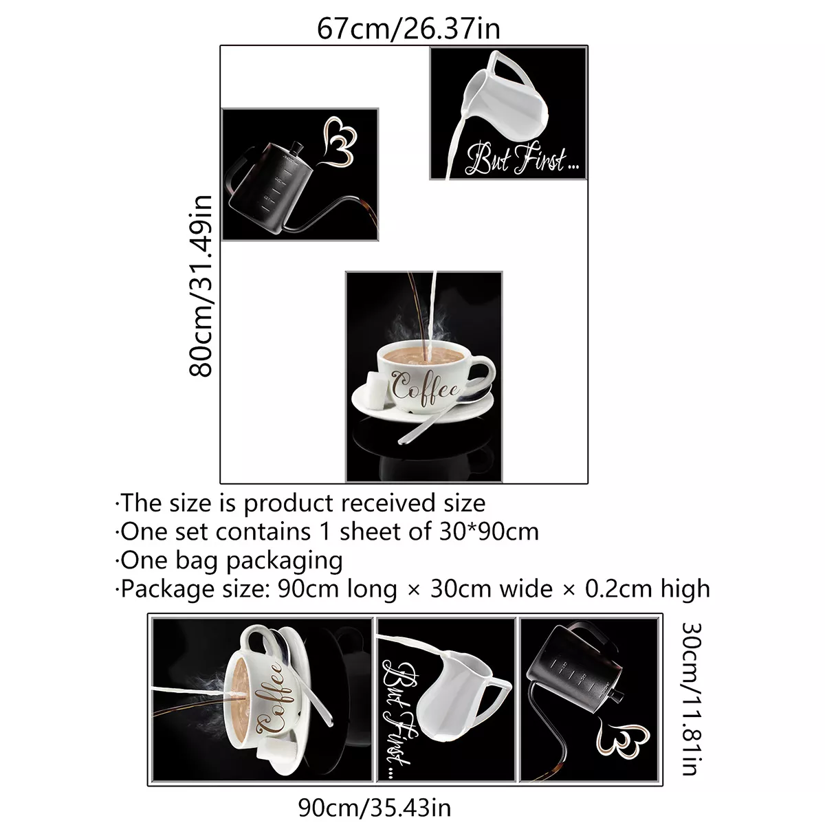 Crafted from high-quality PVC, these wall stickers are durable, waterproof, and designed to last. The self-adhesive backing ensures a simple and mess-free installation process—just peel and stick! The stickers are also removable, which means you can reposition them without leaving any sticky residue behind. With their minimalistic yet bold design, these coffee cup stickers are a perfect fit for any modern home or office setting.