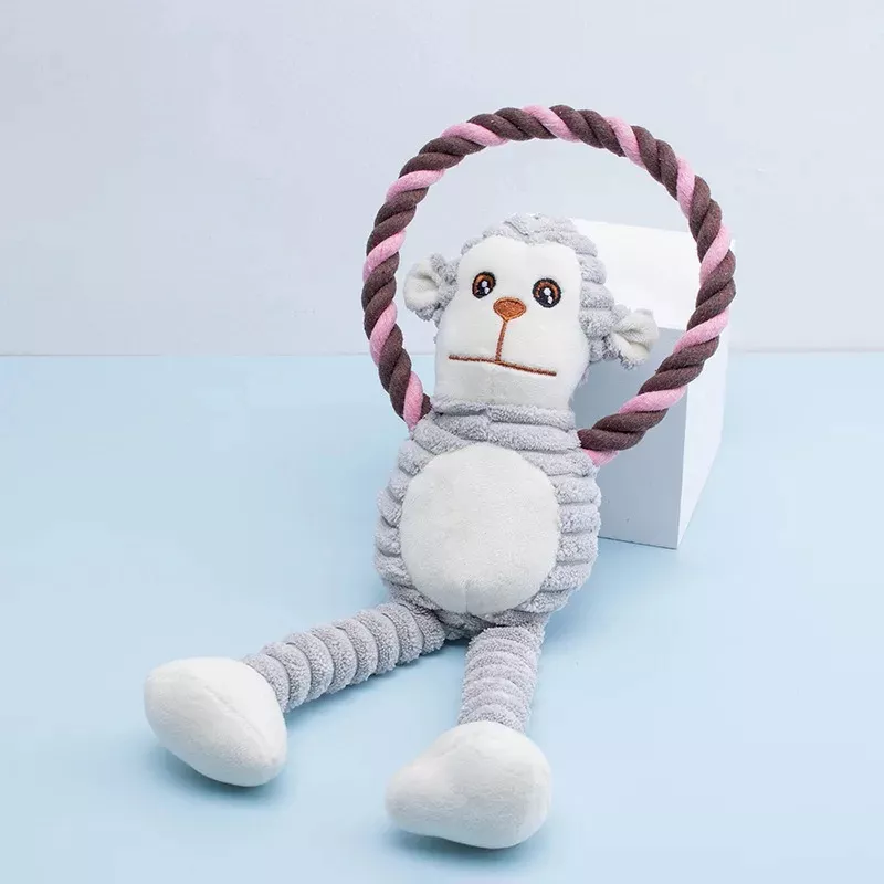 Treat your furry friend to endless fun with our Plush Chew Toy! Designed for playful pups and aggressive chewers alike, this adorable monkey and frog rope toy offers both entertainment and essential dental care. The soft fleece material is gentle on your dog’s gums, while the sturdy cotton rope with a molar knot helps keep teeth clean. Plus, the built-in squeaker makes playtime even more exciting!