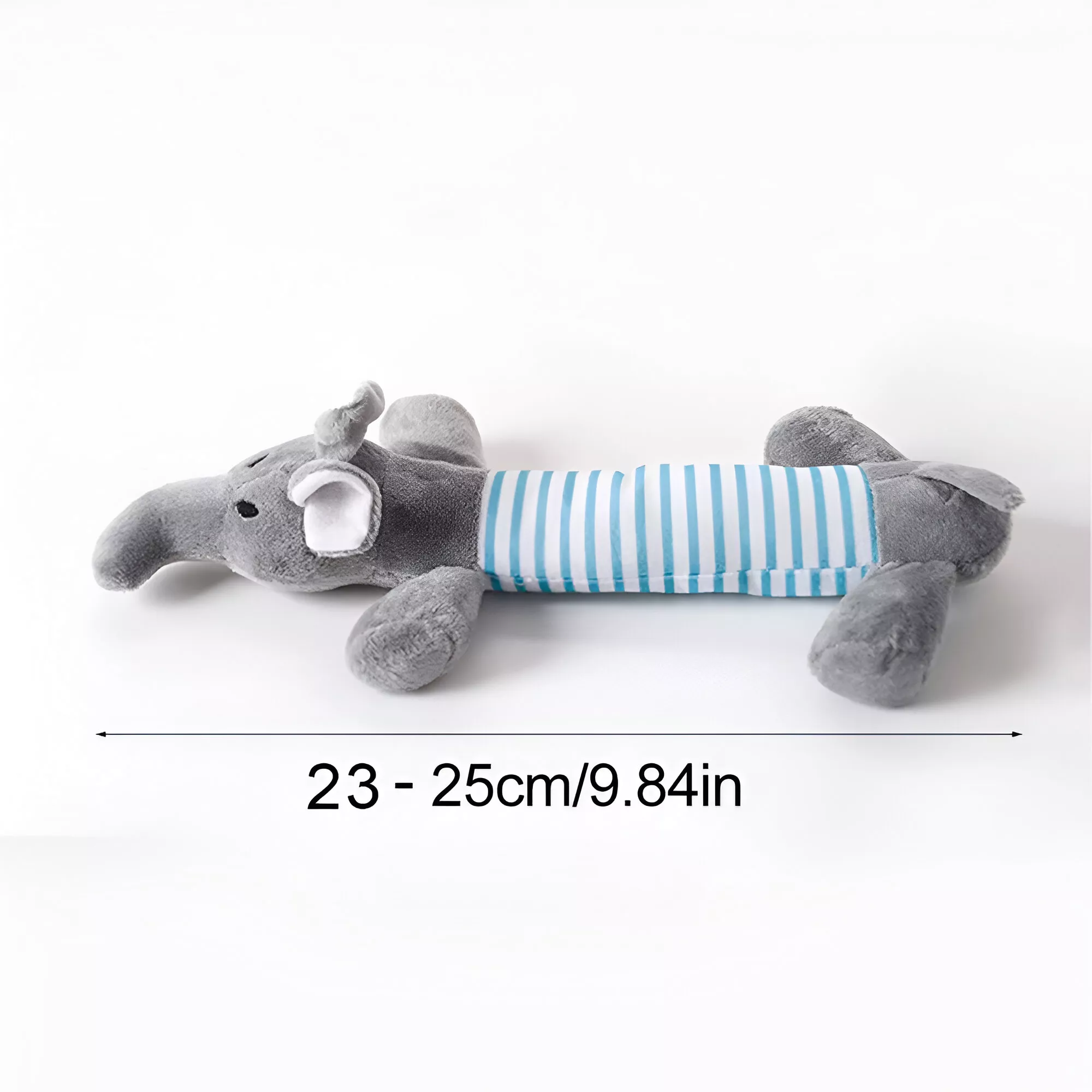Plush Chew Toys. Featuring adorable designs of an elephant, duck, and pig, these toys are sure to capture your pet’s attention and keep them engaged for hours. Made from soft fleece material, they are perfect for pets who love to chew and play. Each toy comes with a squeaker, adding an exciting sound that will make fetch and playtime even more thrilling!
