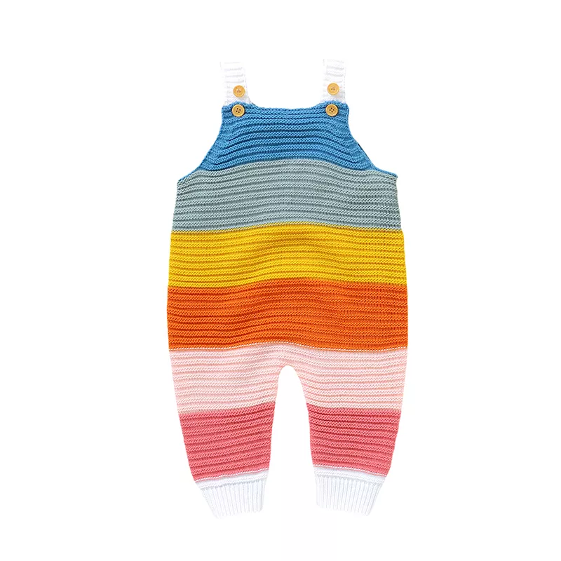 Dress your little one in style with this adorable Rainbow Striped Knitted Baby Romper. Perfect for both boys and girls, this vibrant, sleeveless jumpsuit is designed for comfort and cuteness, making it an ideal outfit for any season. Whether it’s a warm sunny day or a cozy afternoon indoors, this romper offers a soft and breathable fit that your baby will love.