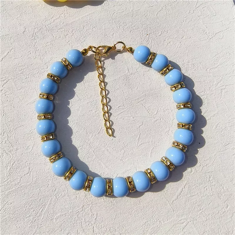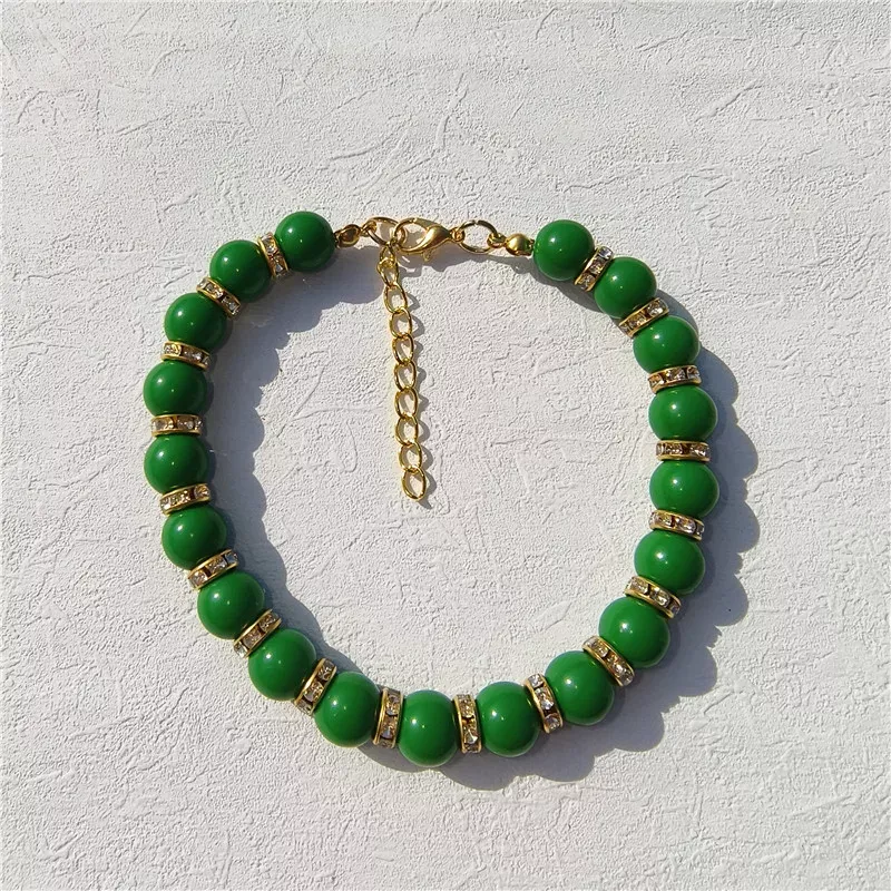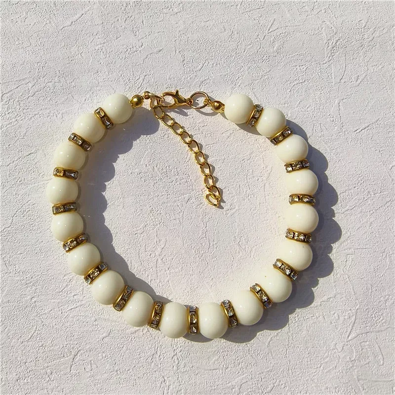 This luxurious pet collar features sparkling rhinestones and delicate imitation pearls, creating a timeless and elegant look. The soft and lightweight material ensures your pet’s comfort, while the secure buckle closure keeps the collar safely in place. Designed for all seasons, your pet can wear it year-round for an effortlessly chic appearance.