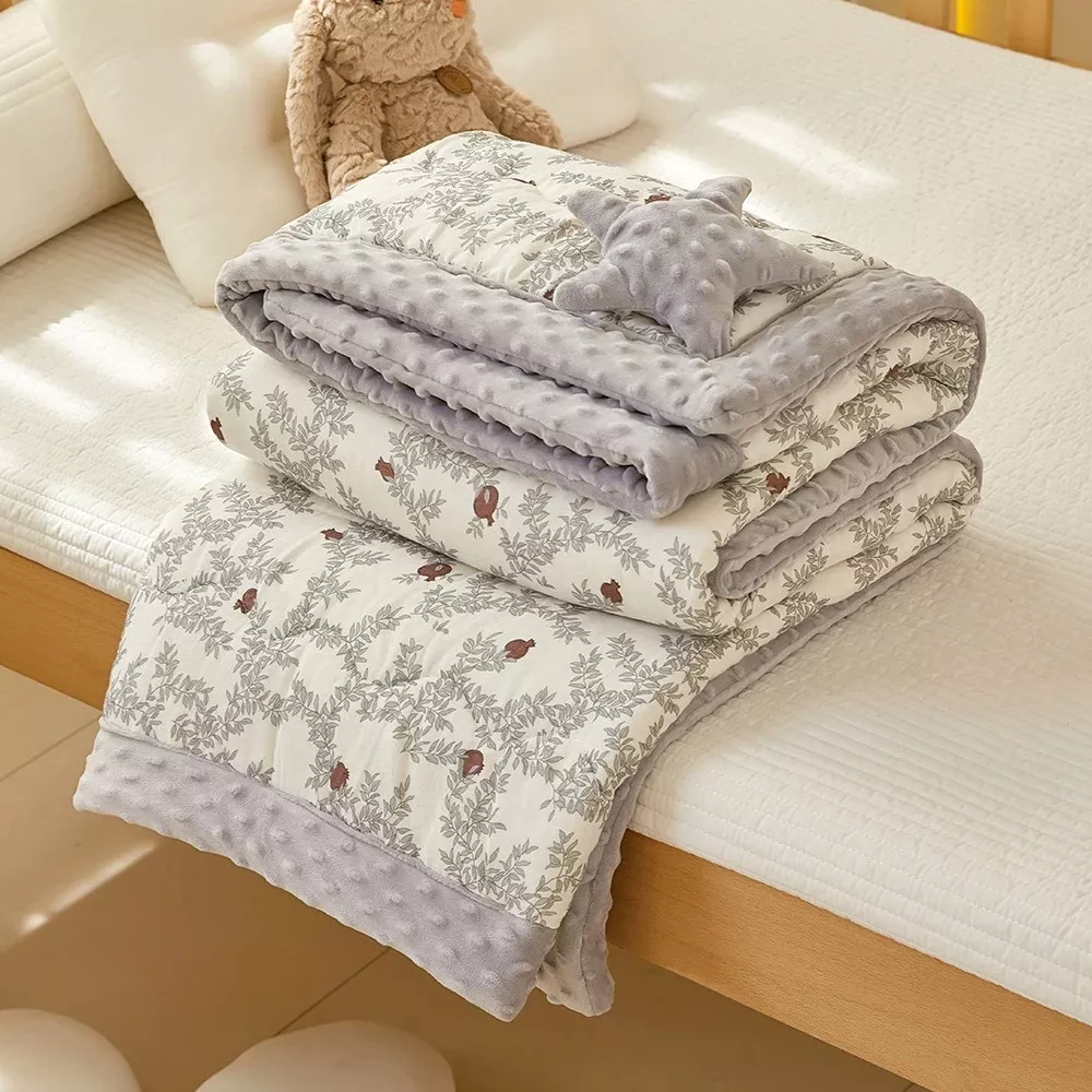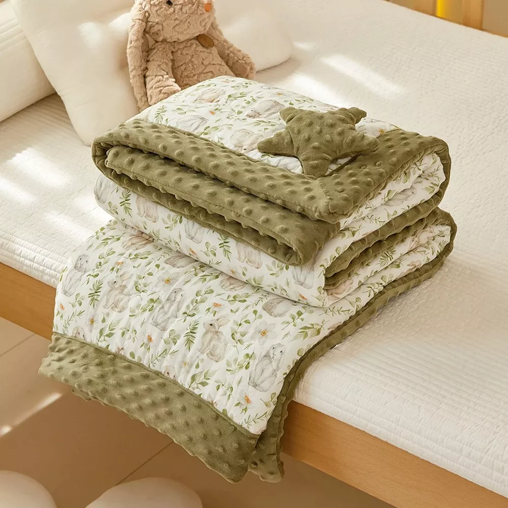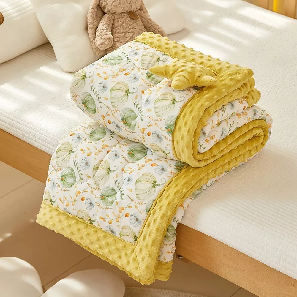 Our quilt features a unique dot minky design that adds a fun and playful touch while providing a cozy, warm experience. Made from breathable and skin-friendly 100% cotton, it is soft to the touch and ideal for colder months, offering a snug, comforting feeling throughout the night or during chilly afternoons.