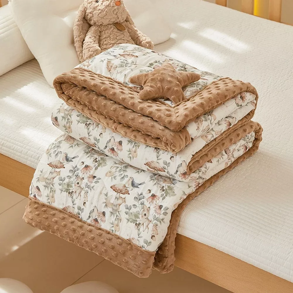 Whether it’s for nap time, bedtime, or a cozy movie night, this soft 100% cotton baby quilt is the perfect companion. Its thick minky texture ensures warmth and comfort, while its playful design adds a touch of fun to your child’s room. Great for keeping your little one warm during winter, this blanket will quickly become a favorite. Make every sleep and cuddle session extra special with this cozy quilt!