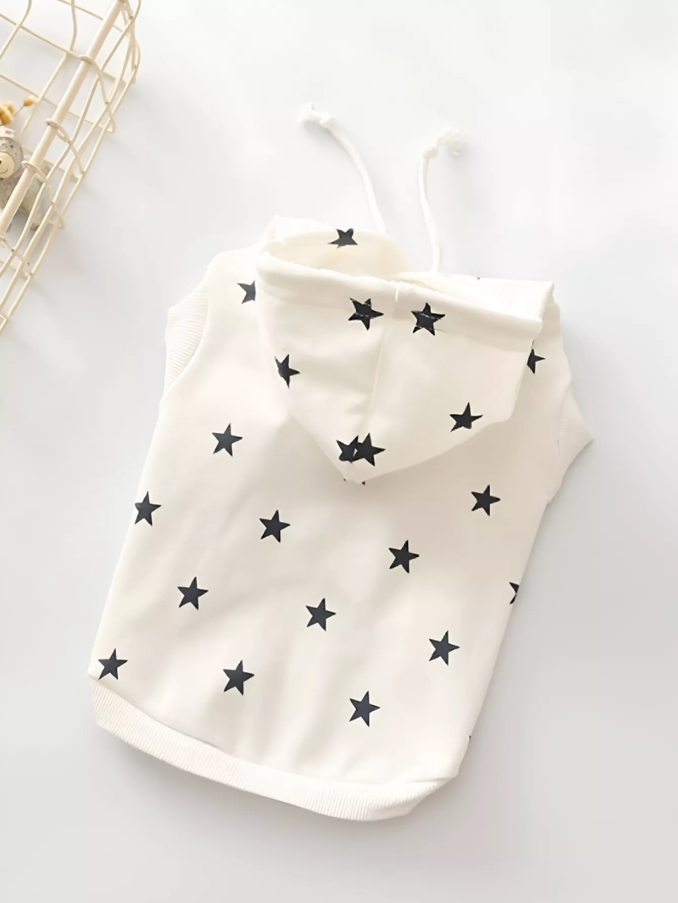 This pet hoodie isn’t just about looks—it’s designed for ultimate comfort. The lightweight material ensures your pet won’t feel restricted, while the soft inner lining provides warmth without overheating. The pullover design makes dressing your pet easy, and the stretchy fabric ensures a snug yet comfortable fit. Plus, the fun star pattern adds a trendy touch, making your pet the star of the show wherever they go.