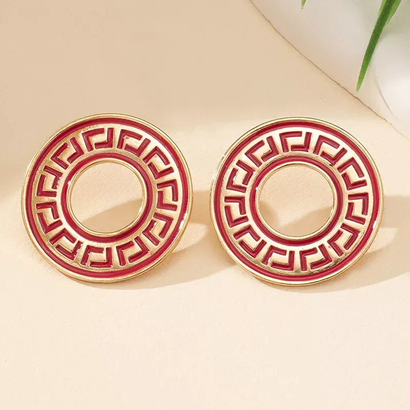 Crafted with high-quality zinc alloy, these earrings are not only fashionable but also lightweight and comfortable to wear all day long. The intricate hollow design, paired with bold colors, creates a perfect balance between classic elegance and modern trends.