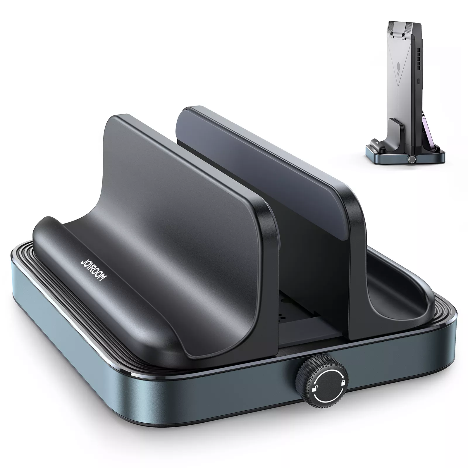 With its simple yet effective design, this vertical laptop stand solves the everyday problem of cluttered desks. It allows for better airflow around your devices, improving cooling and preventing overheating, especially important for MacBooks and gaming laptops. The adjustable width feature is incredibly convenient—no need for screws or complicated adjustments. Simply turn the knob to secure your device in place, and you’re good to go.